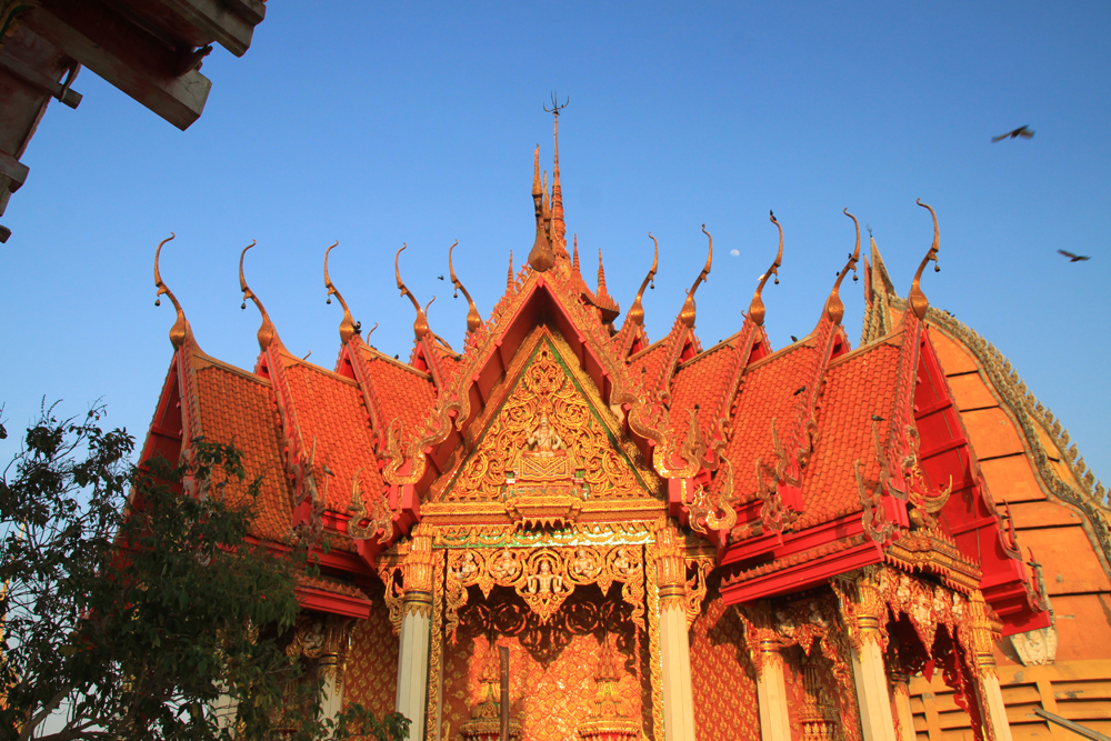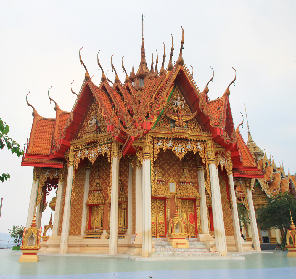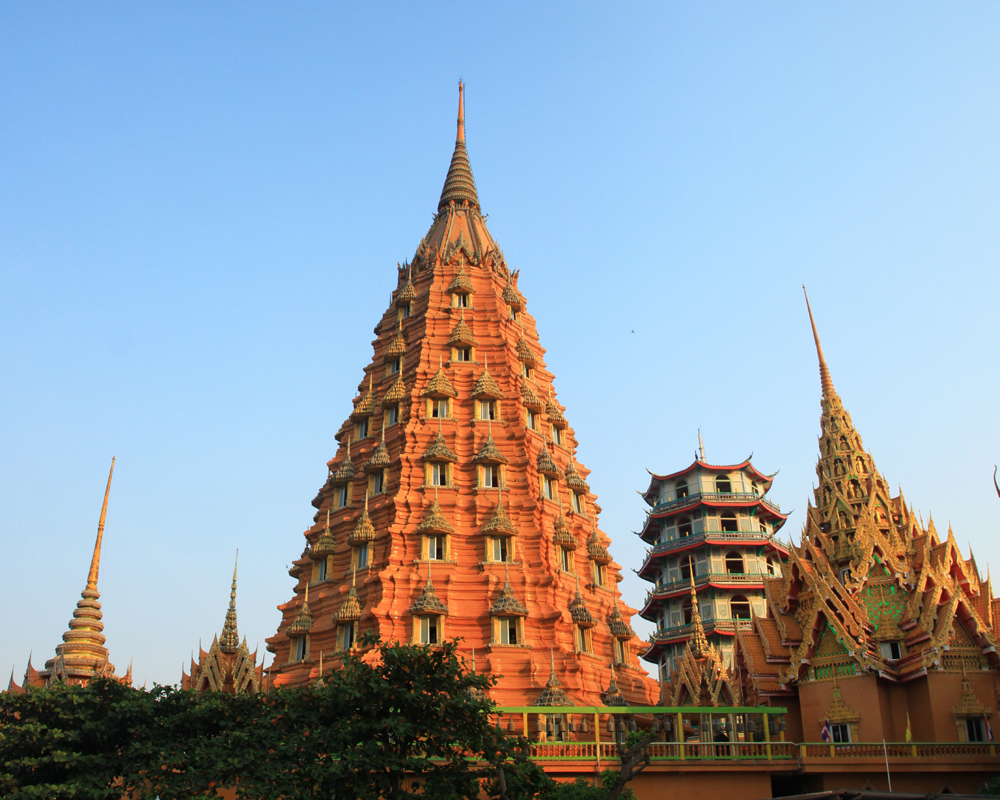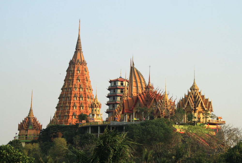 Этот храмовый комплекс расположен в пригороде Канчанабури, примерно в 15 км от города. Архитектура эффектная и запоминающаяся. Увидев картинки в сети, я захотела на него посмотреть.