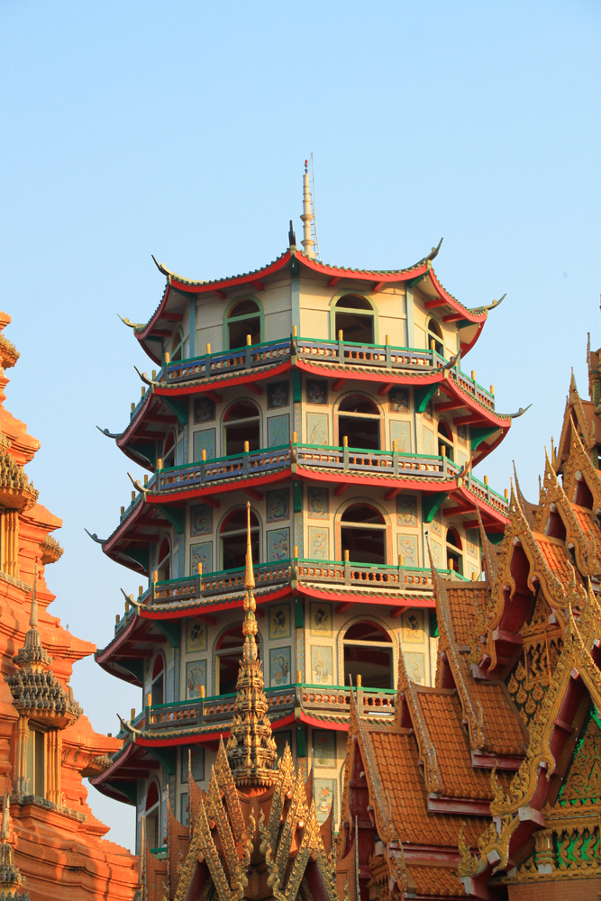 Второй раз мы приехали к храму в солнечную погоду. Закатный свет очень идет этим пагодам.