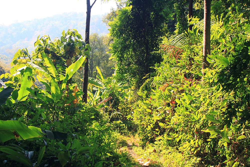 Сперва была очень даже хорошая дорога, потом она превратилась в тропку, а после запруды, когда оставалось по карте совсем немного до водопада, тропа внезапно кончилась. И елочные игрушки мгновенно стали настоящими, я пришла в себя, жизнь заиграла прежними яркими красками. Надо просто немного приключений добавить, чтобы морок отступил. Самое смешное, что до водопада мы не добрались, тропа стала объективно опасной, склон слишком крутой, и без мачете и серьезной обуви мы решили не соваться. Повернули назад, но при этом остались довольны.