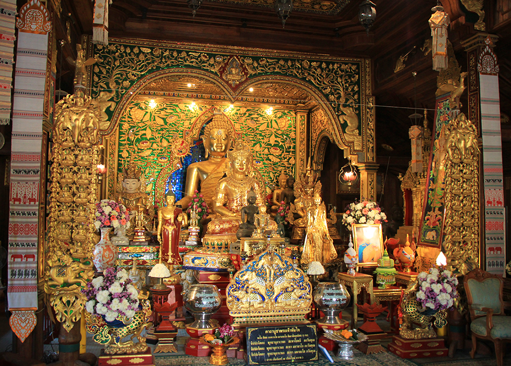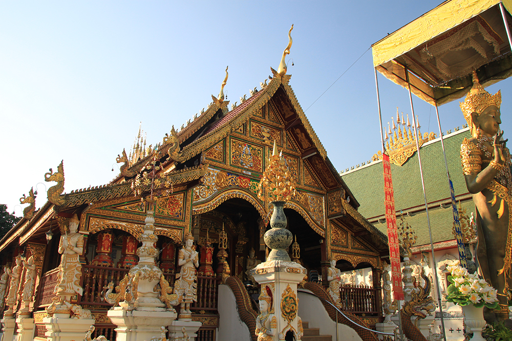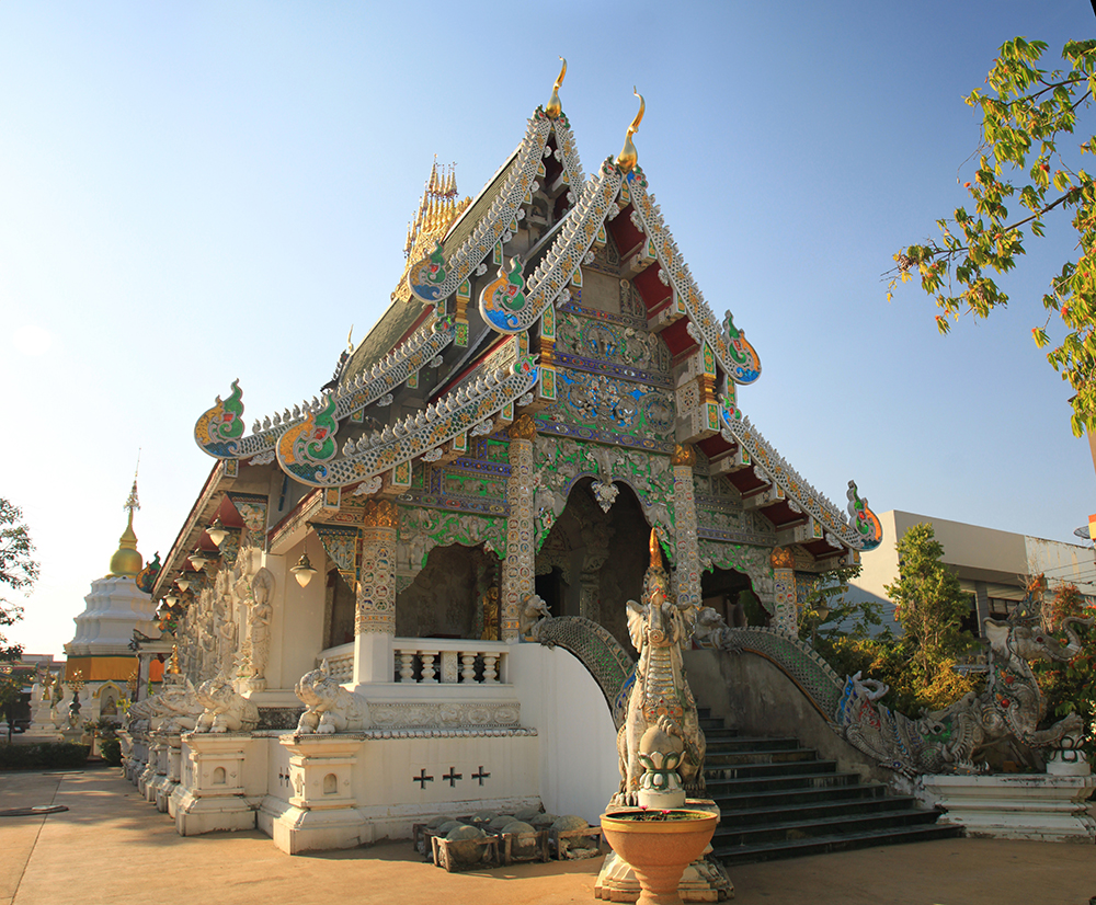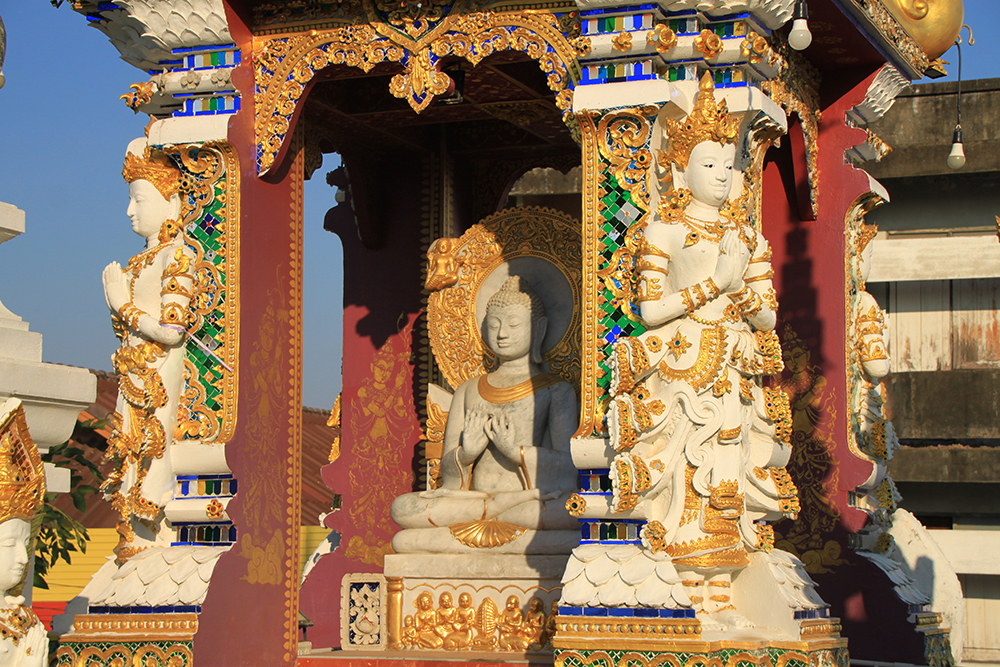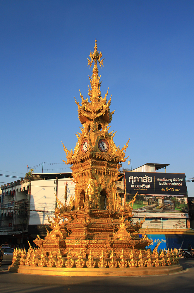 Чтобы посмотреть на Белый храм, мы остановились на ночь в Чианграе. Там довольно сложно пройти мимо золотых часов того же автора. Стиль очень узнаваем.