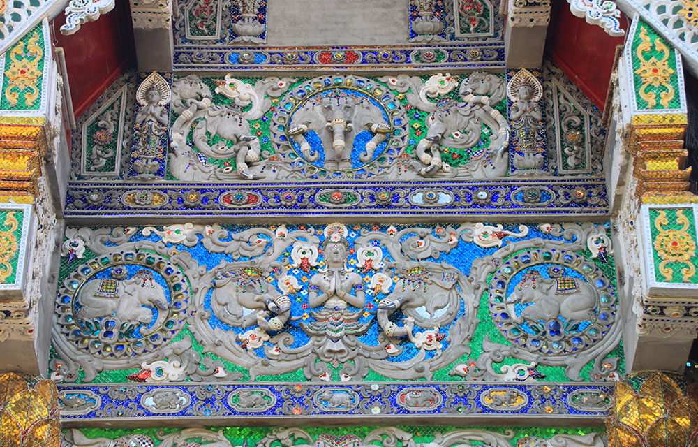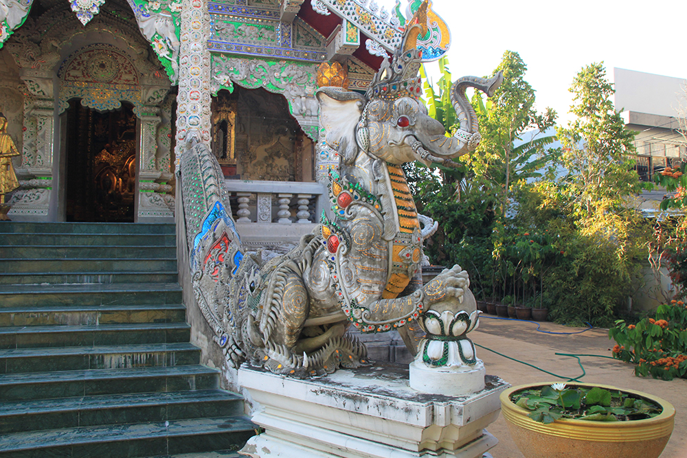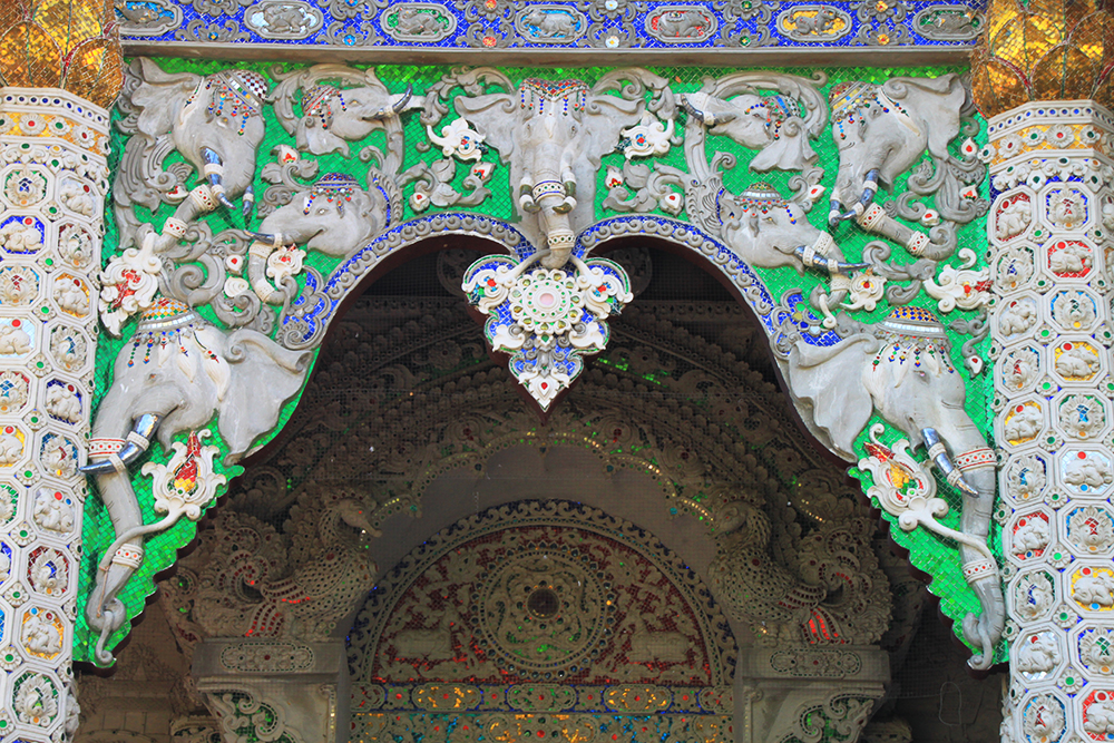 Поскольку в храме основная тема – слоны, то и отделка тоже вся в слонах.