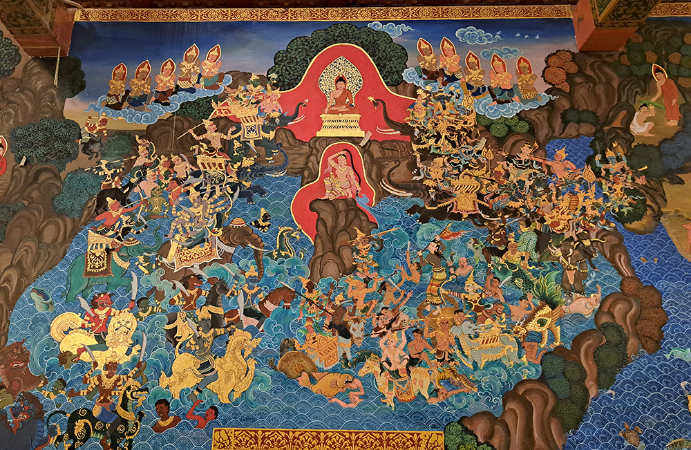 Внутренняя роспись. Ма Тхорани смывает воинство Мары.