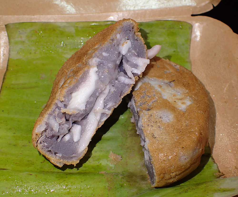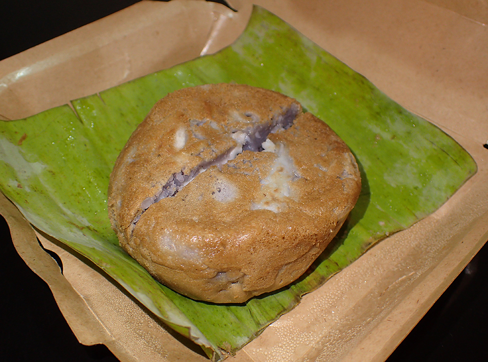 Кокос, рисовая мука, тростниковый сахар, тайская классика. А цвет такой, кажется, таро дает.