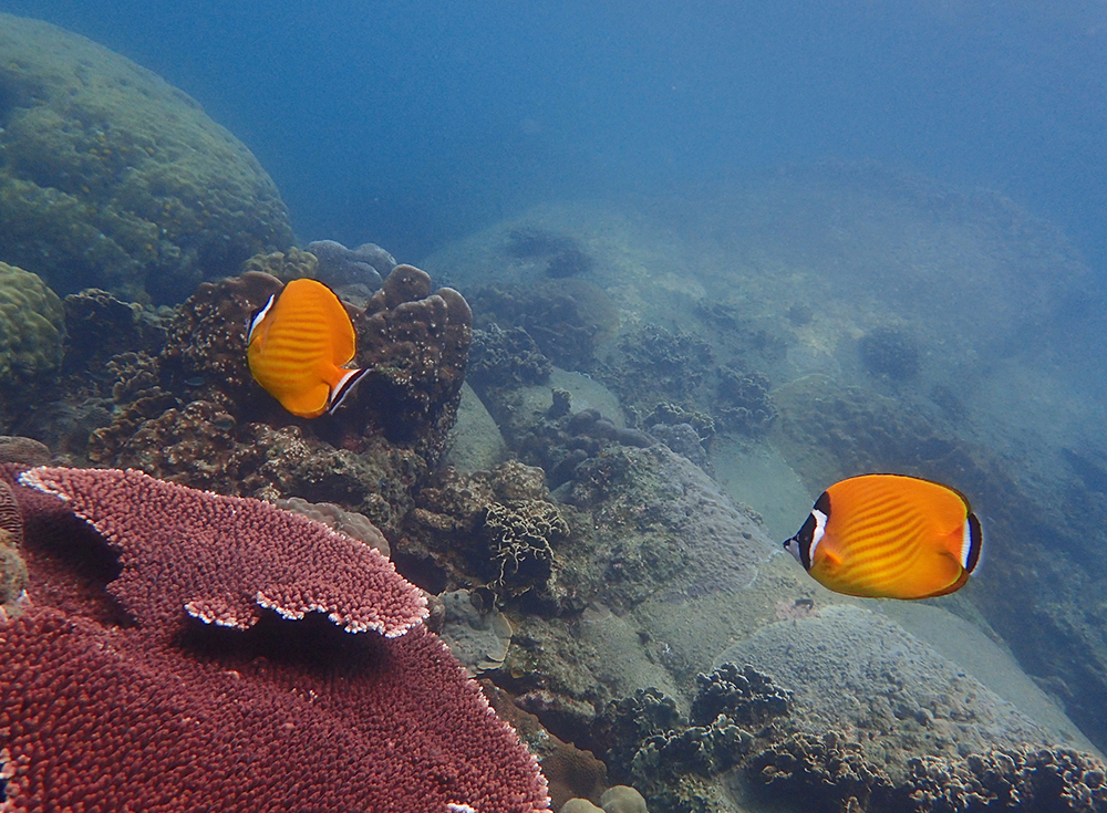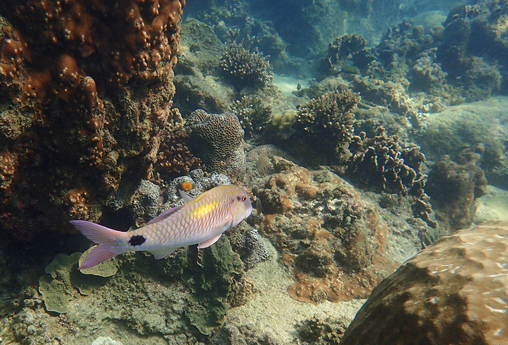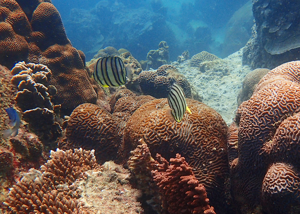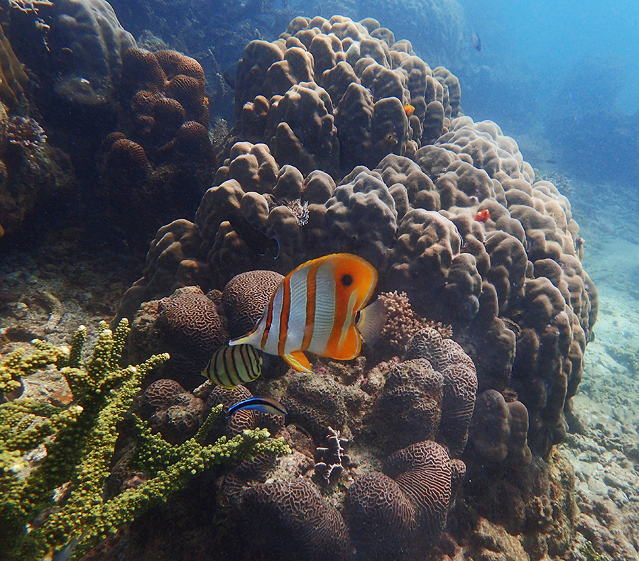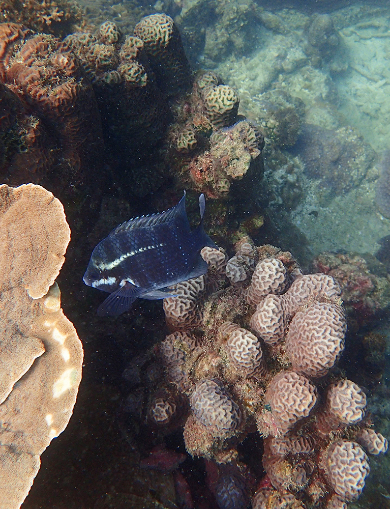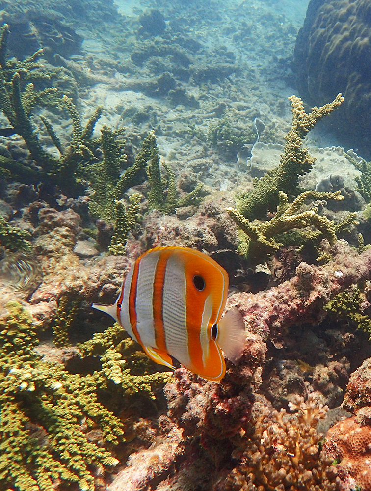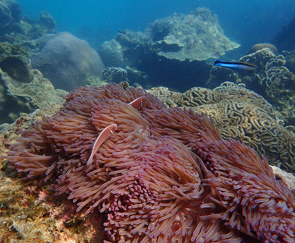 В бухте мы провели около 6 часов в общей сложности, было два больших заныра — первый по левой стороне бухты, второй справа. Кораллы ограничены буйками, чтобы лодки туда не заплывали. Между погружениями ели, отдыхали и убирались.