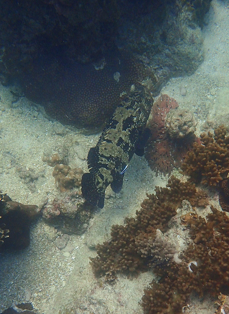 Большой группер, не дает близко подплыть.