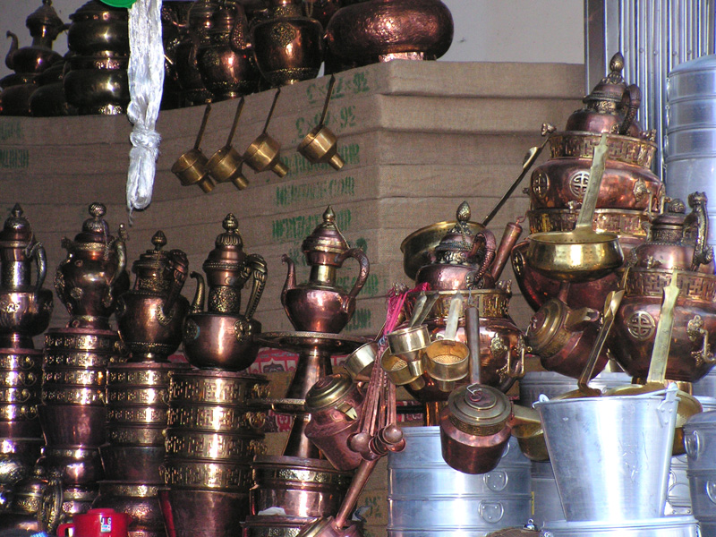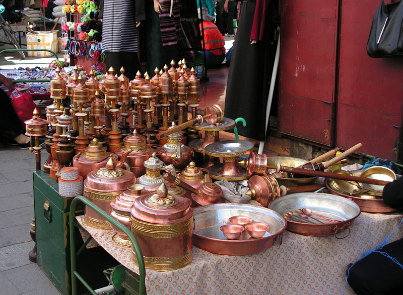 Вокруг Джоркханга расположен торговый район Баркхор со множеством всяких лавочек. Сувениры и Тибете покупать нет смысла, потому что в Непале есть все то же самое, только гораздо дешевле. Так что мы просто смотрели. И вот почему. Поменять деньги - целая проблема: в Лхасе есть только официальные банки, работающие с 10.00 до 18.00, а позже хоть умри. Никаких уличных обменников.