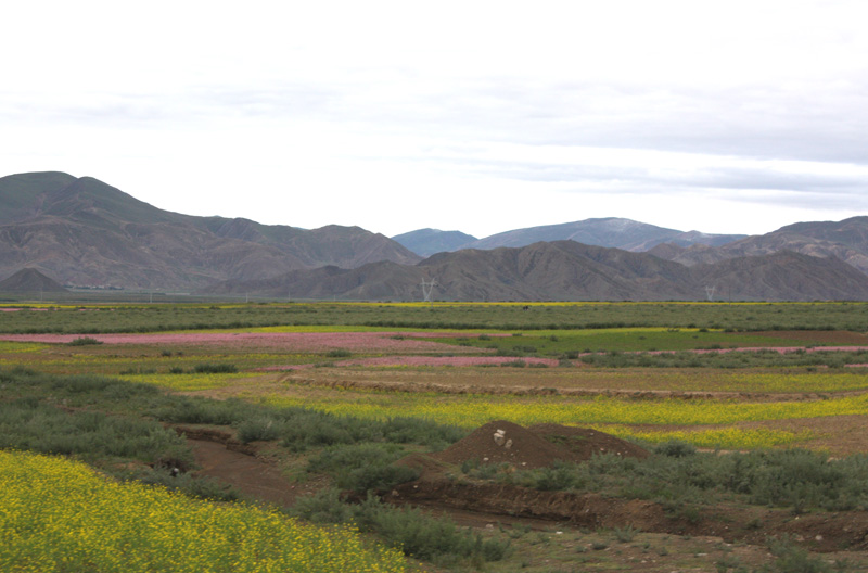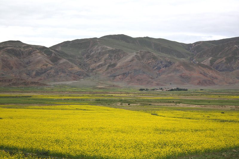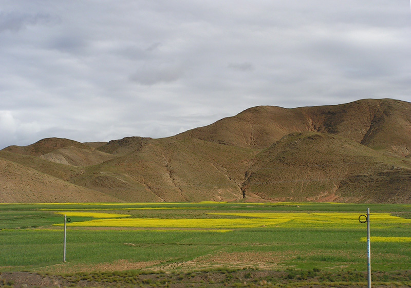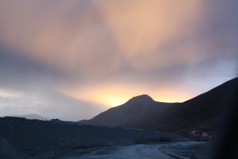 Из Сакьи мы доехали до Лхотсе, и тут цивилизация внезапно кончилась: асфальтовая дорога повернула на юг, на Ньялам, а наша грунтовка оказалась перекрыта до вечера. Мы подождали четыре часа, погуляли в ячменных полях, а потом в темноте поехали по чему-то, на дорогу непохожему. Но закат был красивым: