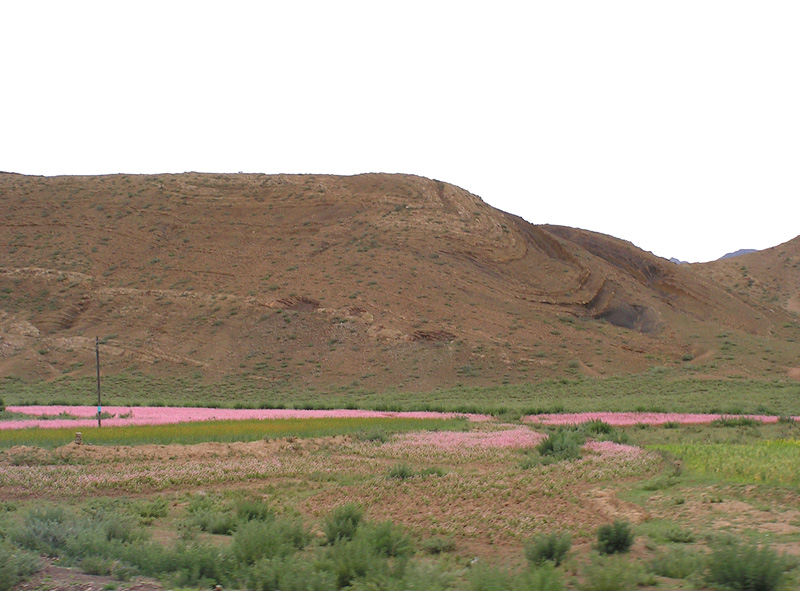Желтые цветочки - это рапс, из него делают масло. А вот что там такое розовое и гламурное растет - не знаю.