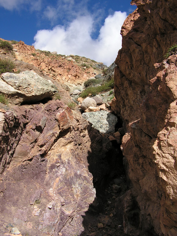 Скалы вокруг были разноцветные - с розовыми и зелеными вкраплениями:
