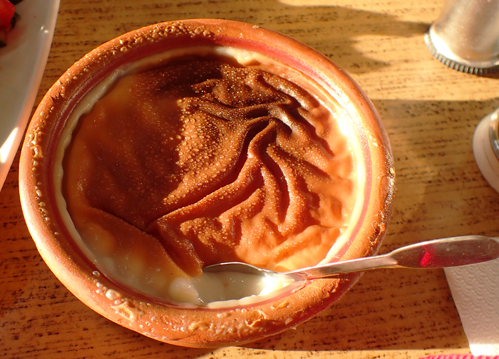 А это сутлач. Относится к сладостям, но по сути это томленая в молоке и охлажденная рисовая каша, на завтрак самое оно.