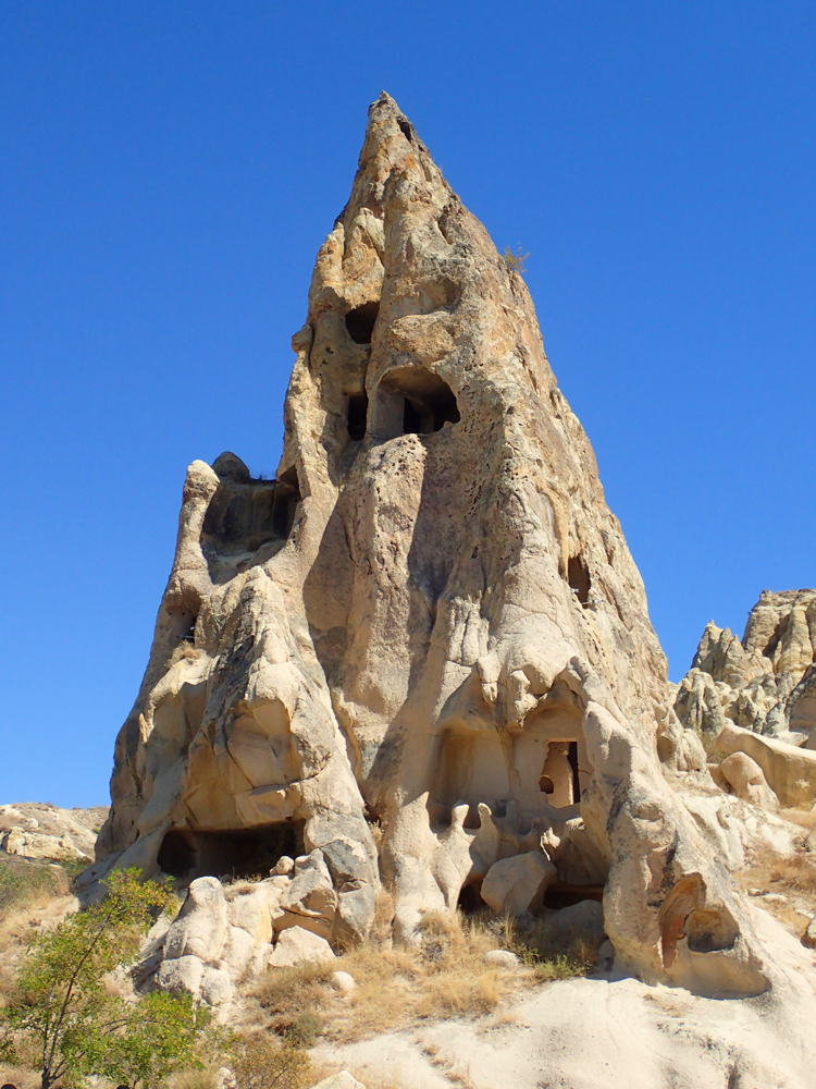 Сперва отправились в музей Гёреме под открытым небом. От поселка он примерно в двух километрах. Эти два километра было сложно пройти, потому что я все время отвлекалась. Вокруг столько скальных домиков.