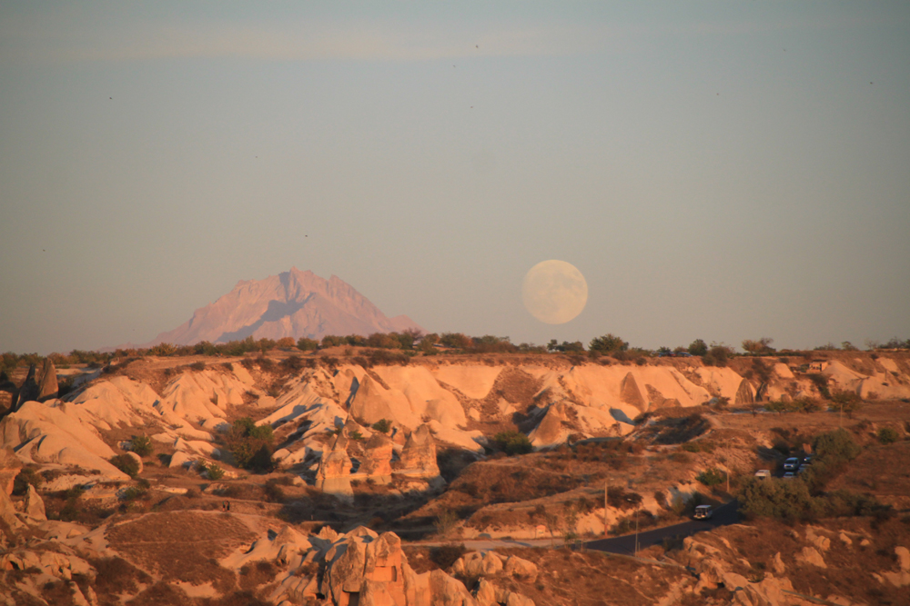 Вдалеке рядом с восходящей луной один из тех вулканов, благодаря которому вокруг все так красиво. Эрджиес, если не ошибаюсь.