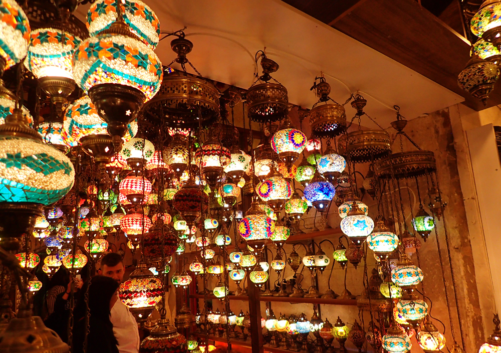 Впервые я увидела эти лампы в Испании, в Марбелье, и просто влюбилась в них. Оказалось, что они турецкие. Здесь стоят совсем недорого: настольная лампа с одним плафоном — 40 лир (меньше 7$). А про большие я не спрашивала. Даже маленькую лампу купить не решилась, поскольку мы приехали налегке и возить ее за собой в Памуккале, а затем в Стамбул было бы плохой идеей.