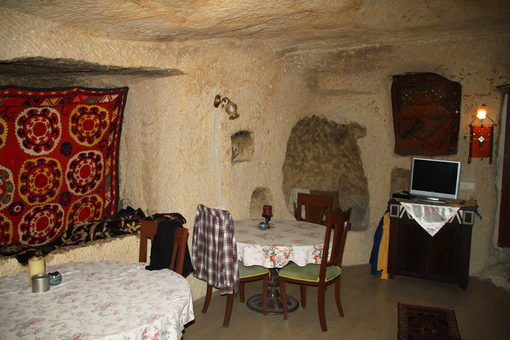 В Гёреме мы жили в Cappadokiss Hotel. Выбрали пещерный номер. Ведь в пещерном городе хотелось пожить по-пещерному :-)