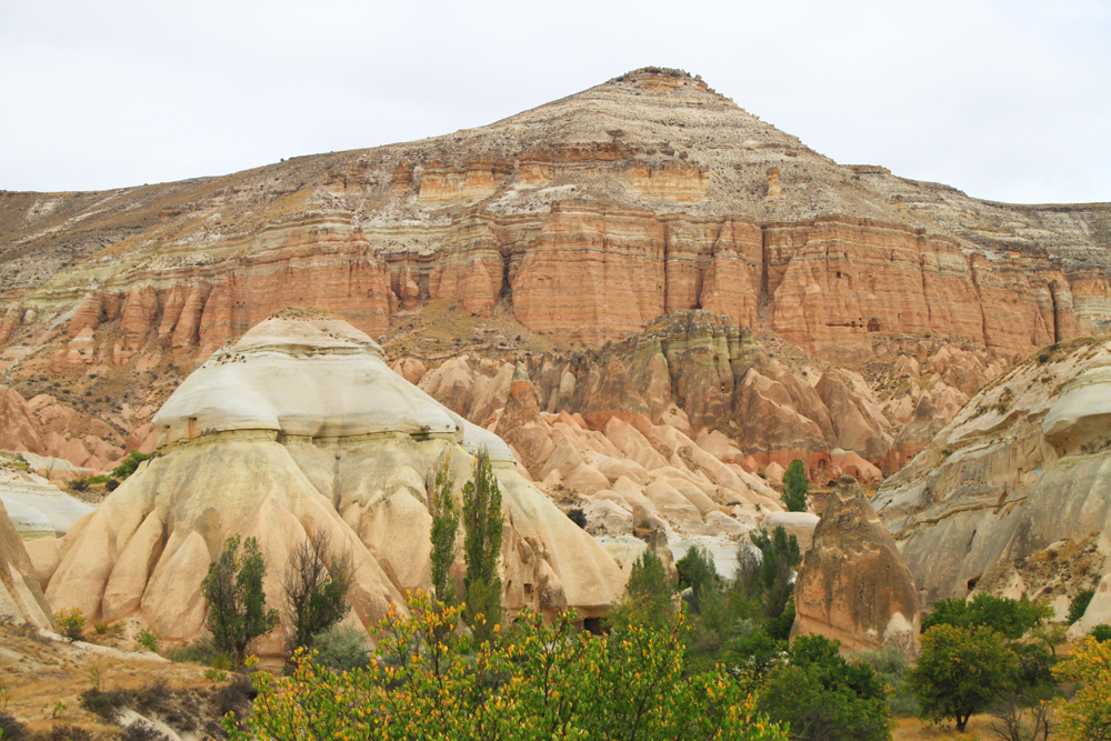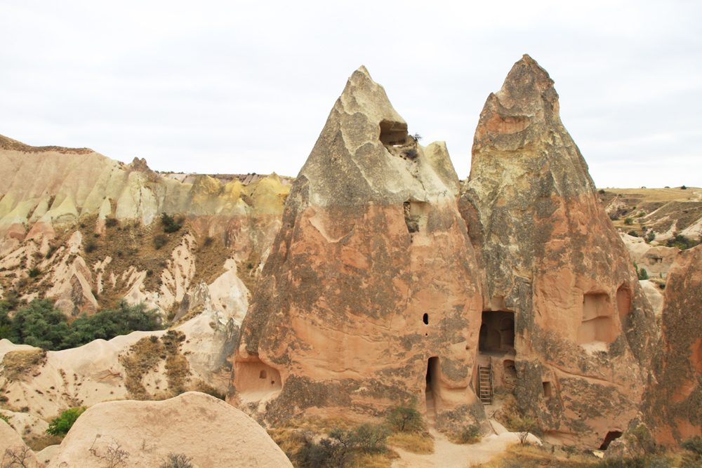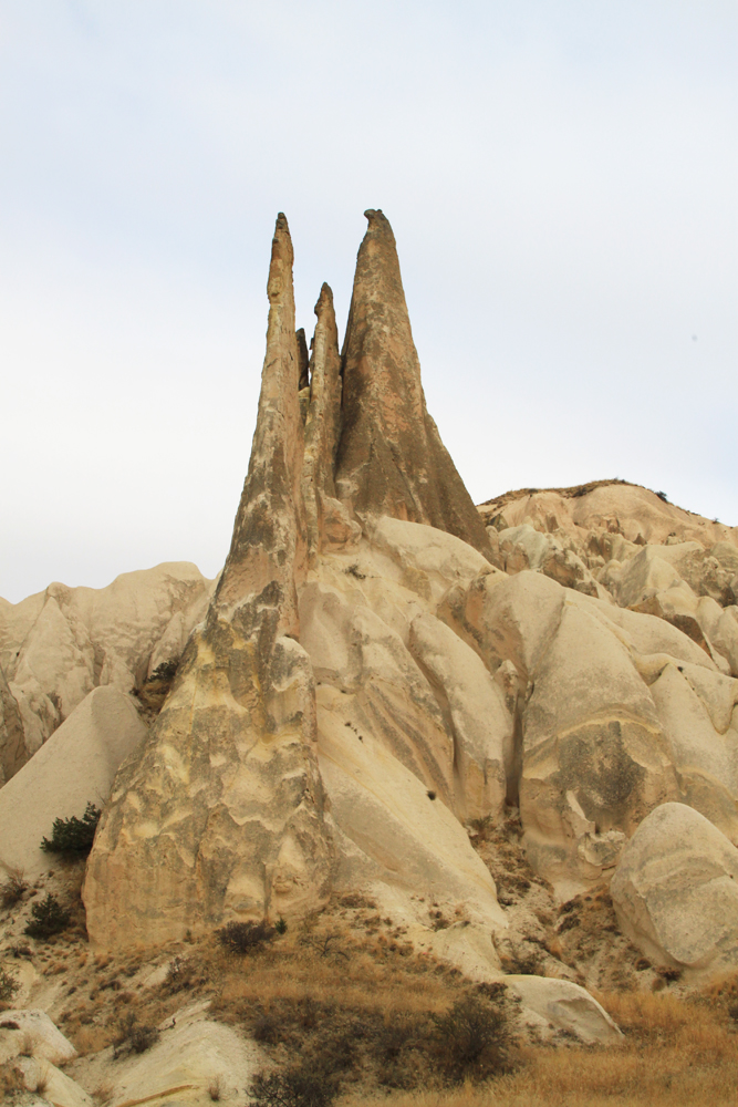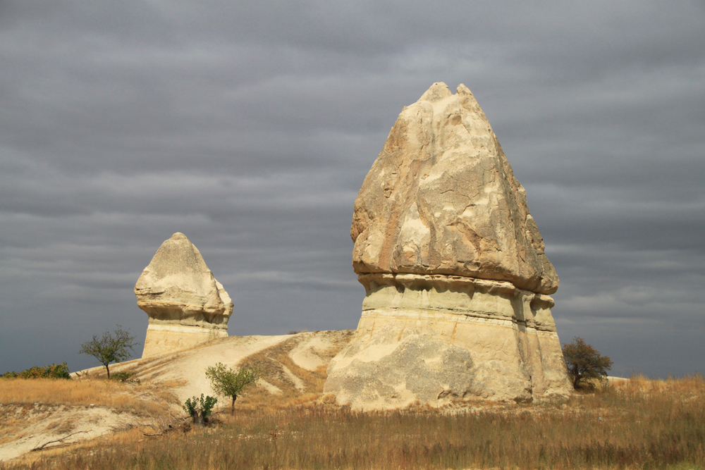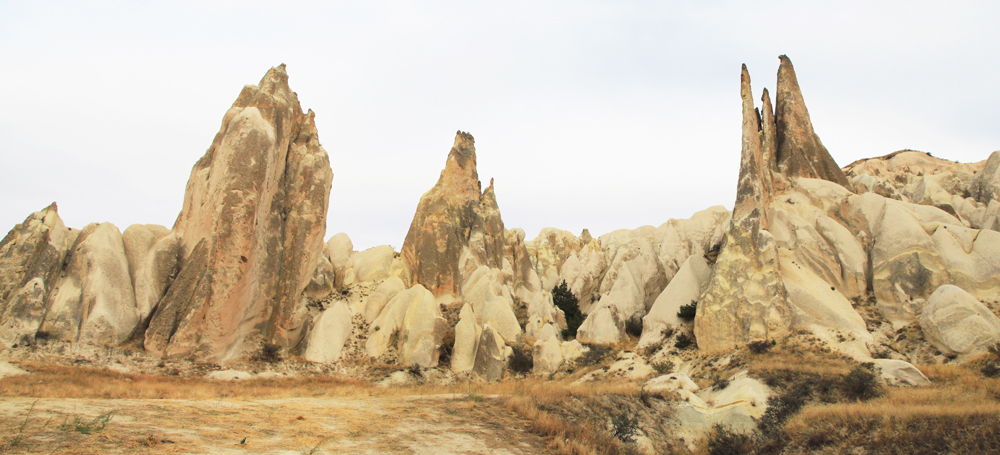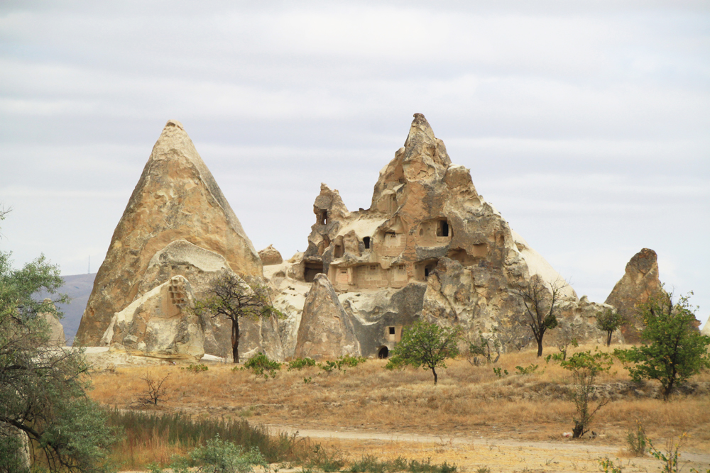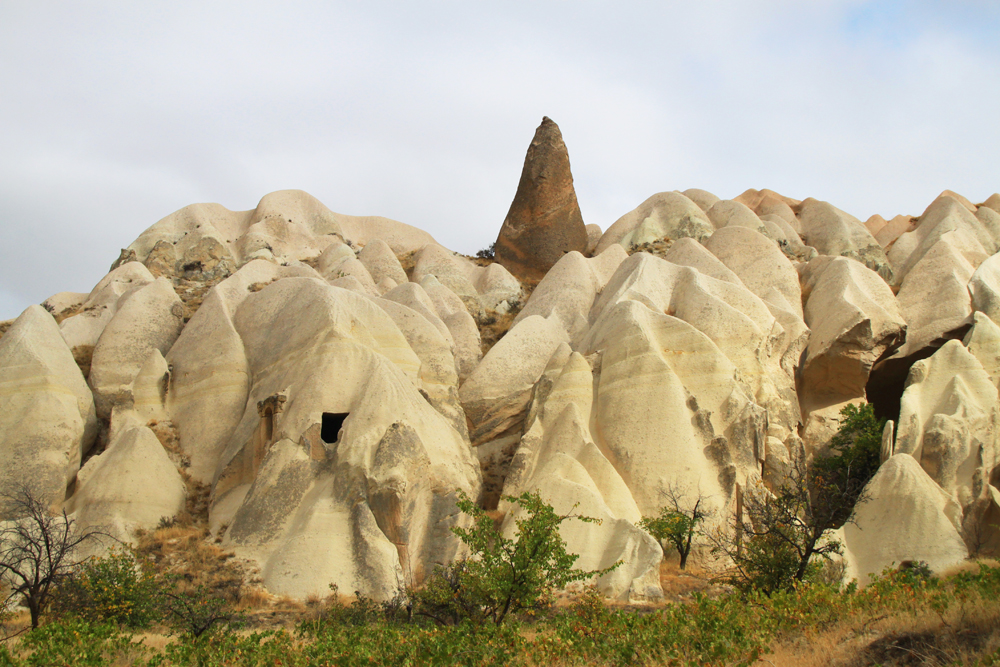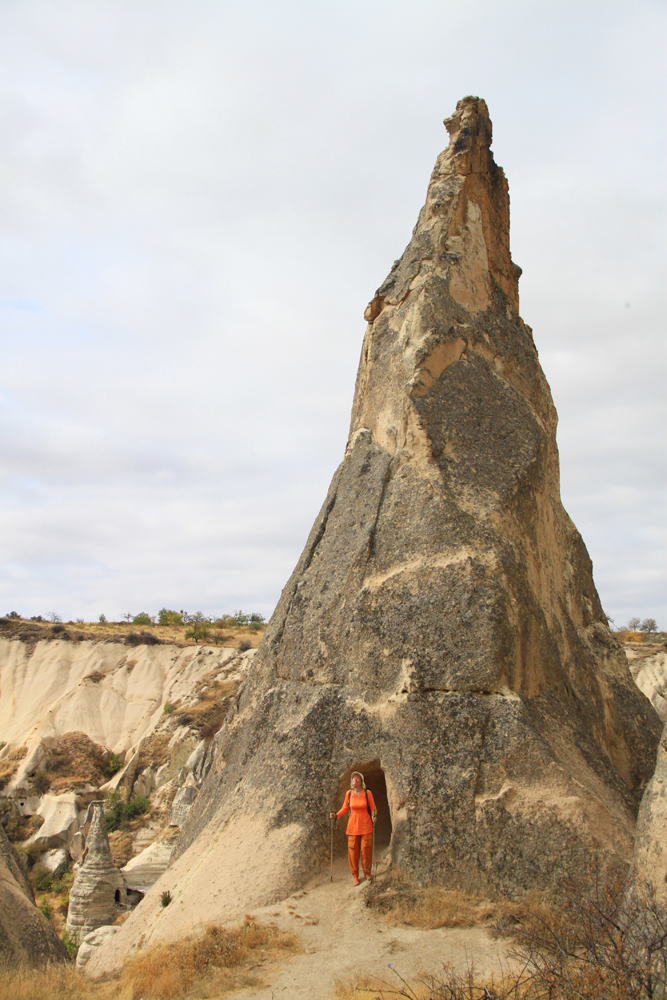 В последний день нашего пребывания в Каппадокии лето кончилось: похолодало градусов на десять и пришли облака. Гулять было комфортно, а вот фотографии получились не такими яркими, как в предыдущие дни. Вообще в Каппадокии континентальный климат: большие перепады дневной и ночной температуры, летом жарко, а зимой бывают морозы до -15. Все-таки это горы.
