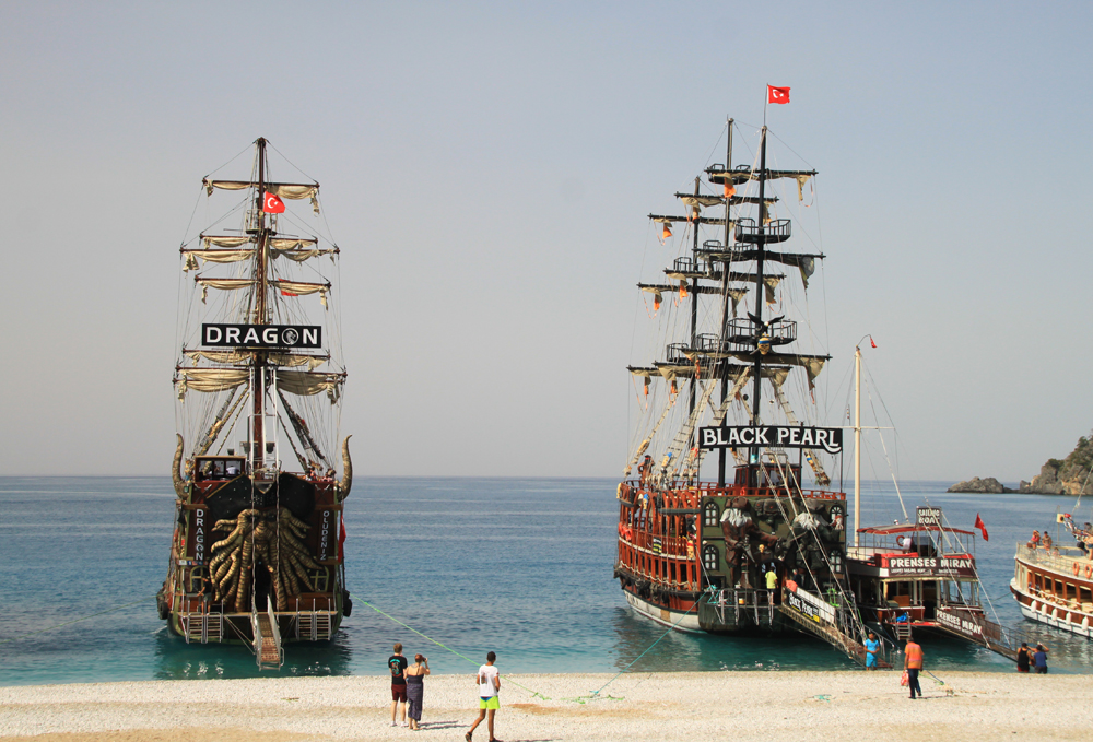Они возят по соседним бухтам (экскурсия называется «6 островов»), но если вы не любите громкую музыку, то нельзя на них садиться.