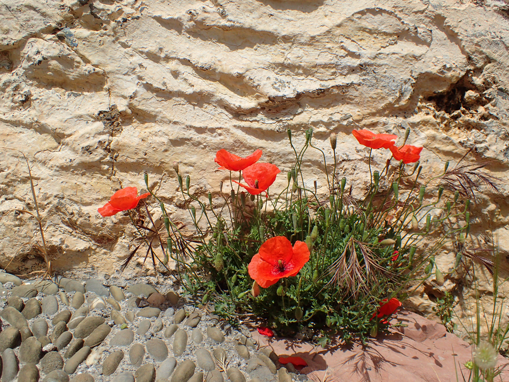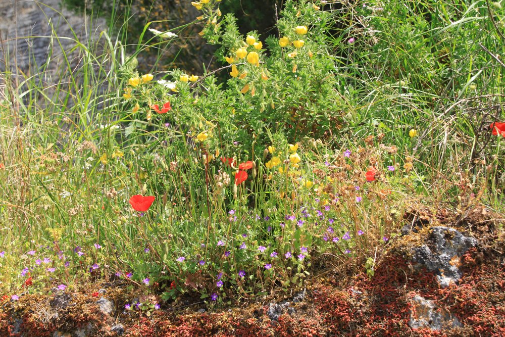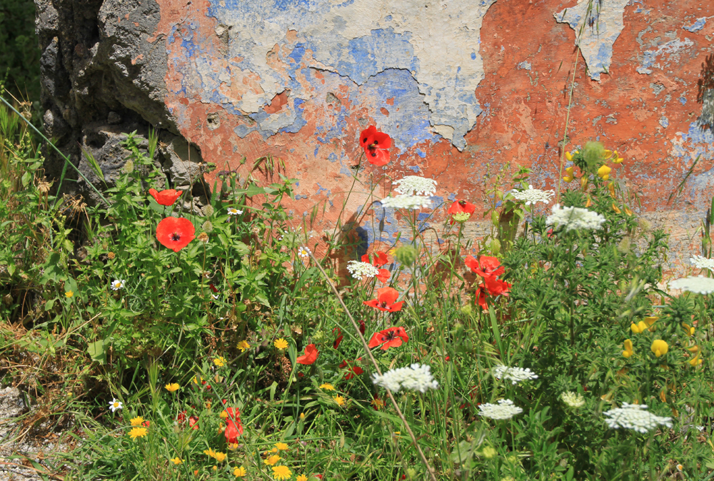 Между ними растут цветы и травы, иногда одичавшие фиговые деревья.