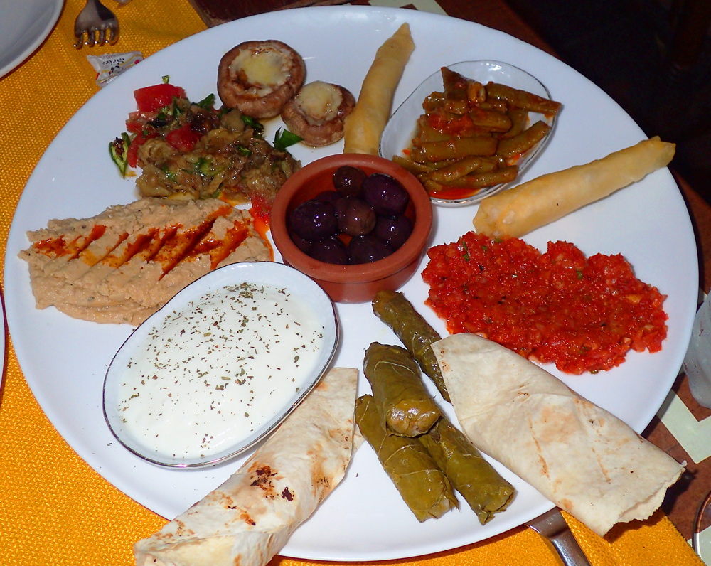 Из ресторанов Олюдениза можно порекомендовать Inci, соседний с Ottoman. У него цены в меню на стенде не указаны, потому что они меньше, чем у соседей. Бараний шашлык по 55 лир (у соседей 70, а реальная турецкая цена 25–35), порция мезе по 35 (вместо обычных 20). Вот она: