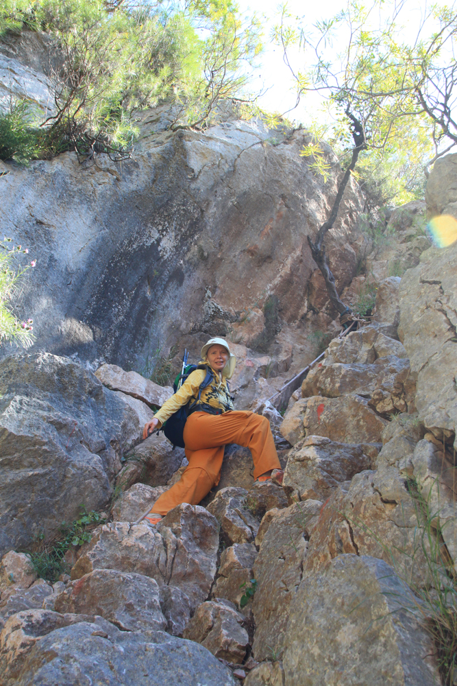 К началу тропы в долину мы пришли в три часа дня, погода была хорошая, запас времени остался. Приняли решение спускаться. Зря я боялась. Нормальная там тропа. Она крутая, но скалы монолитные, везде простое некатегорийное лазанье. 250 вертикальных метров мы преодолели за час, никуда не торопясь. Есть одна деревянная лестница и три веревки на крутых участках.