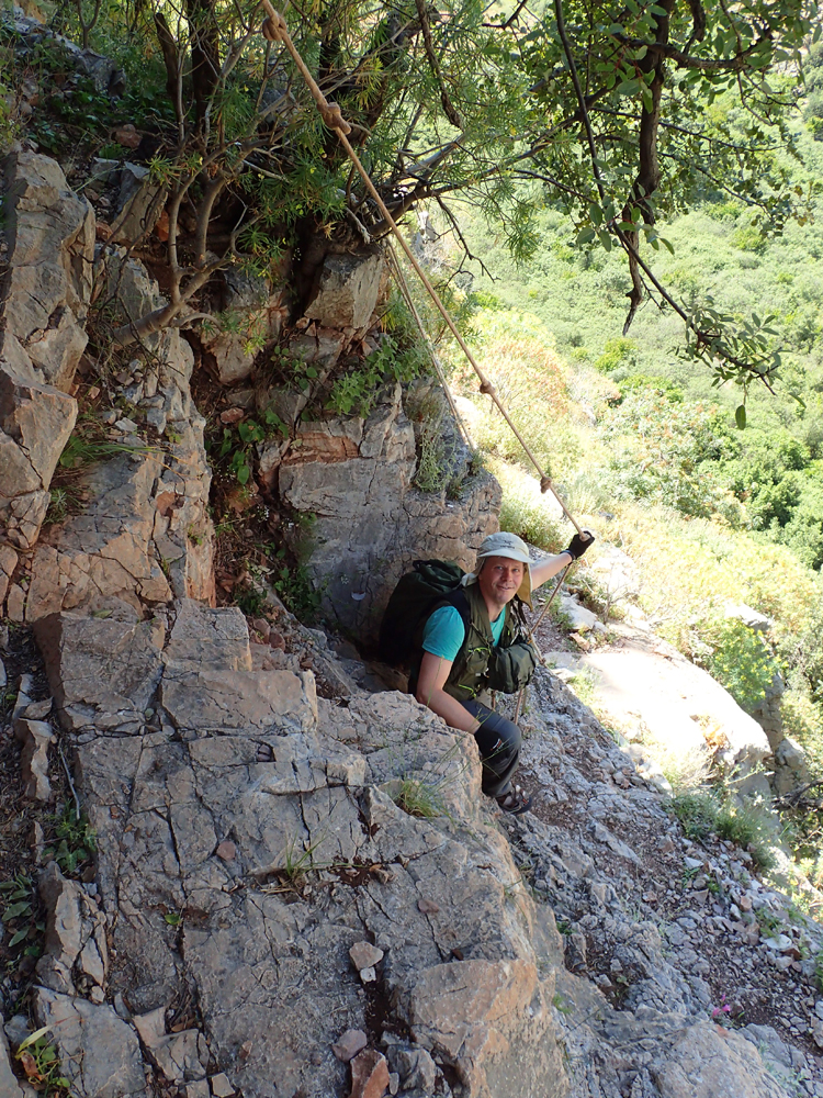 Веревки двойные, нормальные. Правда, скалы под веревками сильно замыленные и потому скользкие, но затем и веревки нужны.