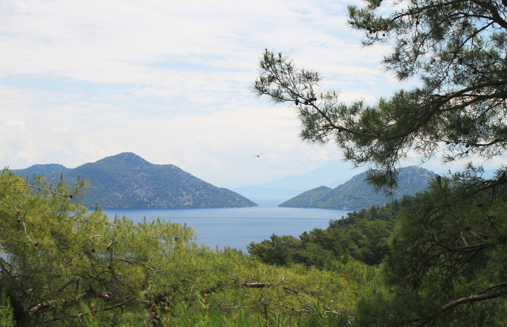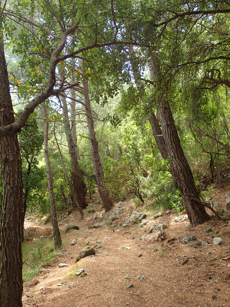 Тропа живописная. Сперва мы увидели бело-красную разметку, которая вообще является основным видом разметки в Европе. Но потом мы с удивлением нашли указатель «Likya yolu». То есть турки пытаются построить продолжение ликийской тропы, которая вообще-то закончилась в Каякёйе (ну ладно, в Фетхие).