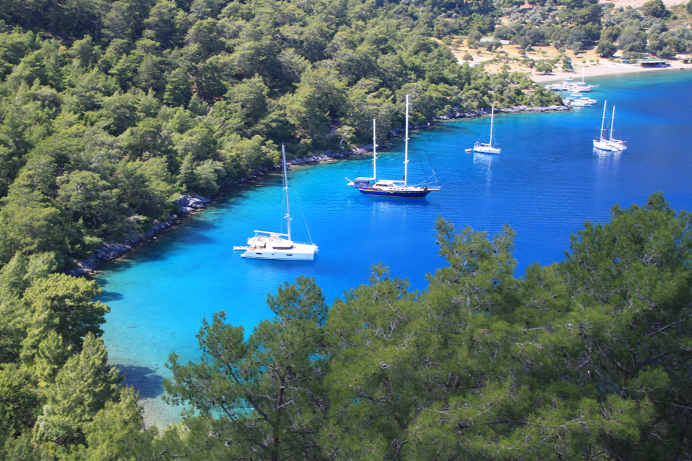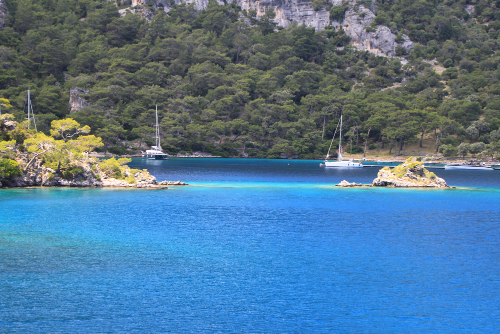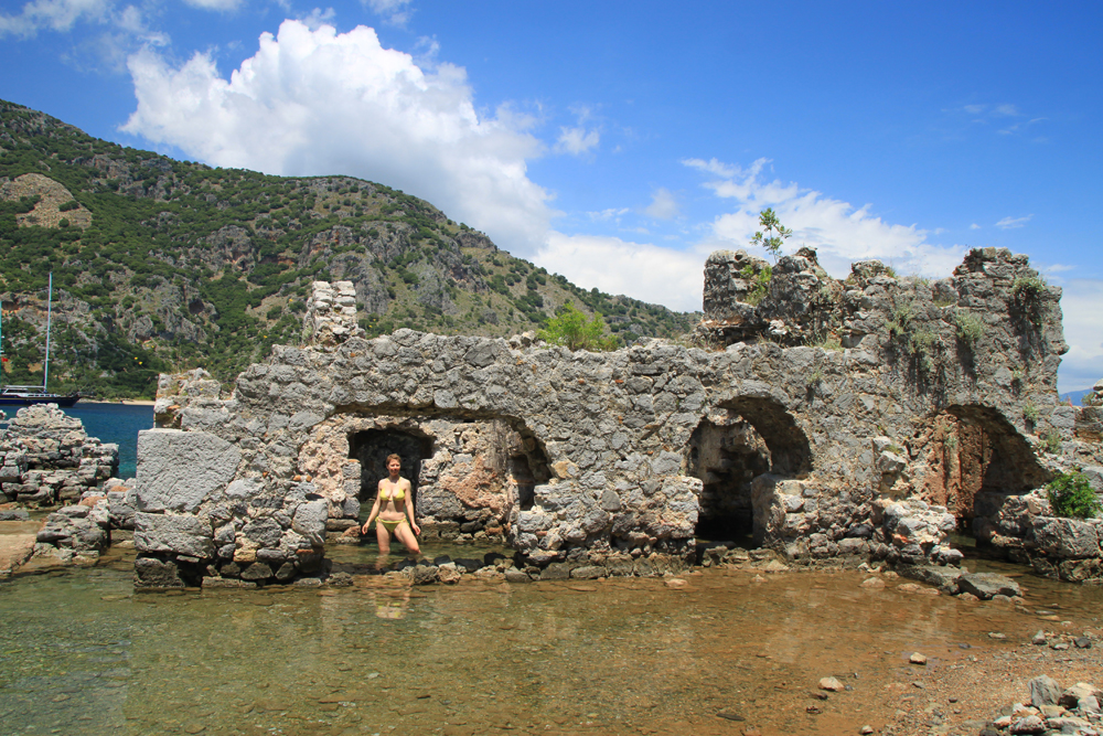 На третий день автопутешествия мы решили добраться до бухты Хамам. Найти про эту бухту адекватную информацию оказалось практически невозможно, потому что гугл сразу предлагает что? Конечно, сходить в ближайший хамам по сходной цене. Но я знала, что бухта входит в программу водных экскурсий из Фетхие. И надеялась, что вдруг там и вправду остались выходы термальной воды. Она же, наверное, не просто так хамам.