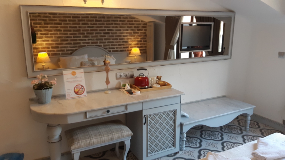 Нас почему-то поселили в номер классом выше. Тут даже интерьер с претензией!