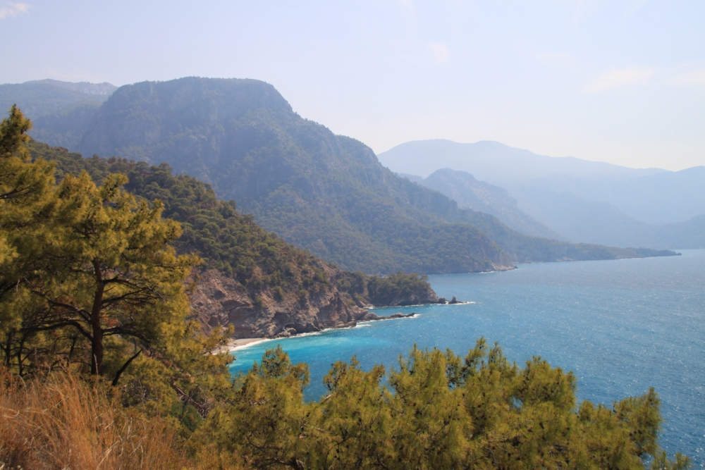 Утром мы поднялись на 200 вертикальных метров над Олюденизом в сторону Бабадага, полюбовались панорамой залива и аккуратно сползли вниз. Палки очень нужны на этом маршруте! Ради них и ради инструментов мы и брали этот дурацкий багаж, а вообще мы и без него умеем путешествовать.
