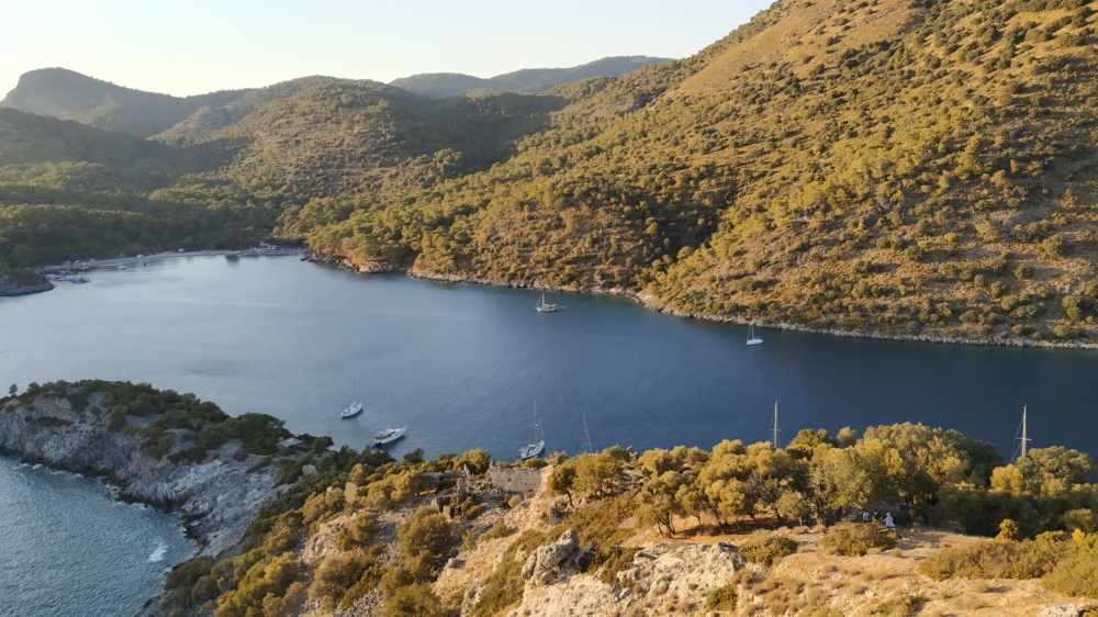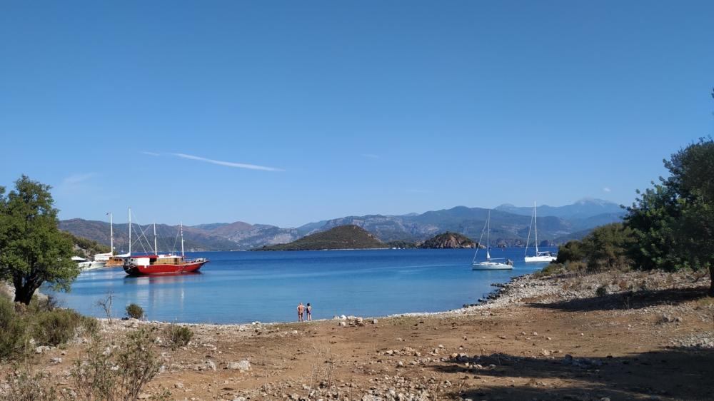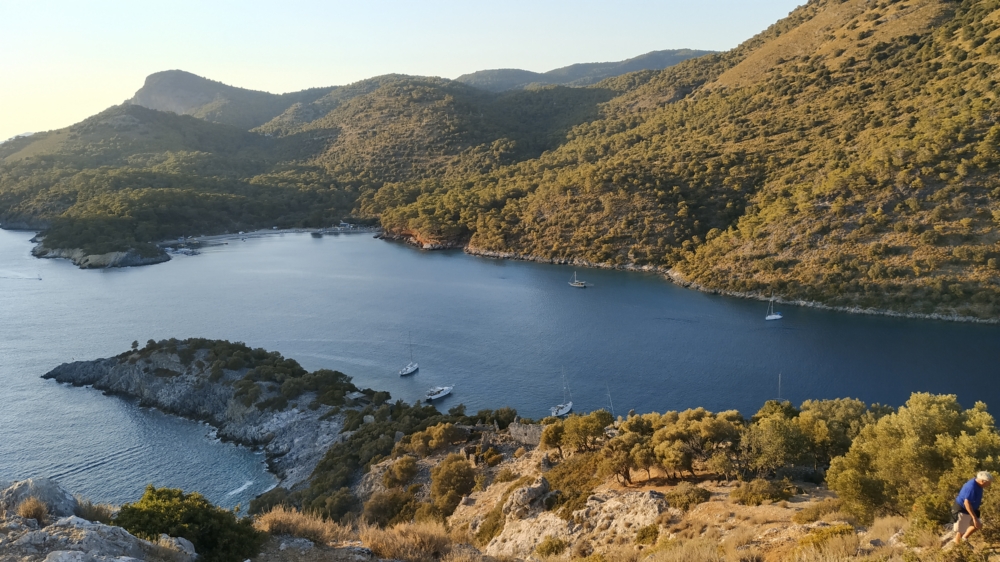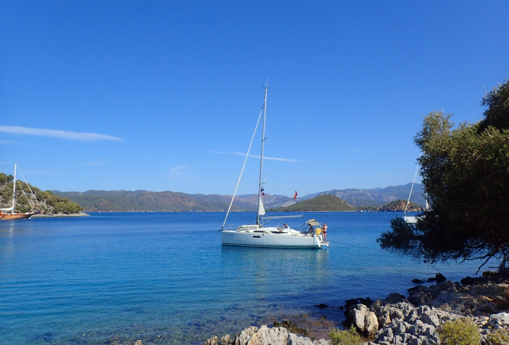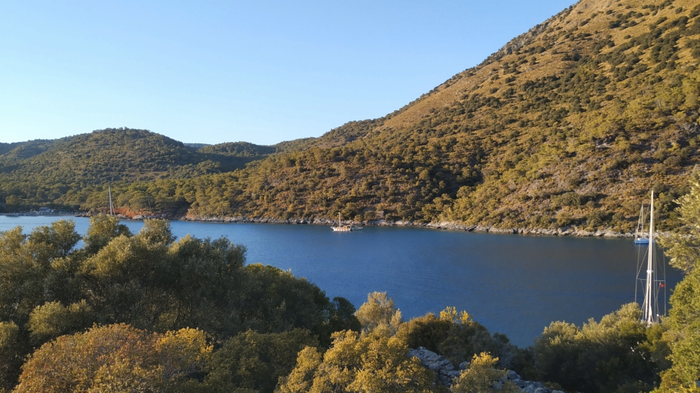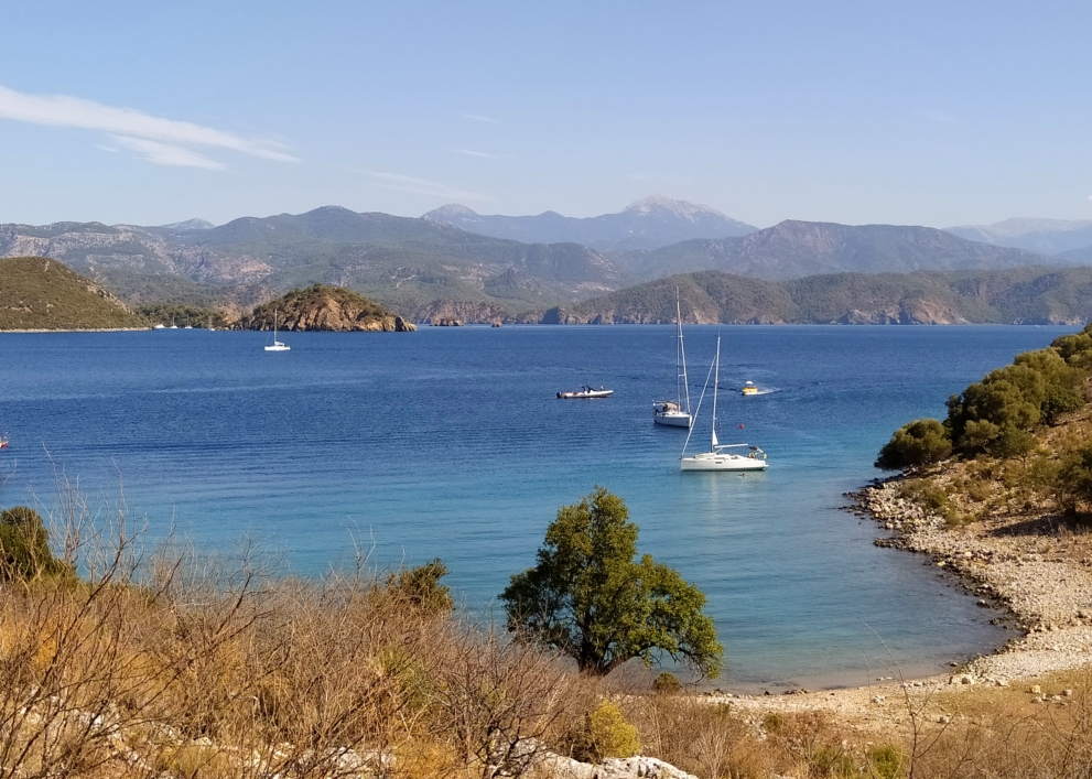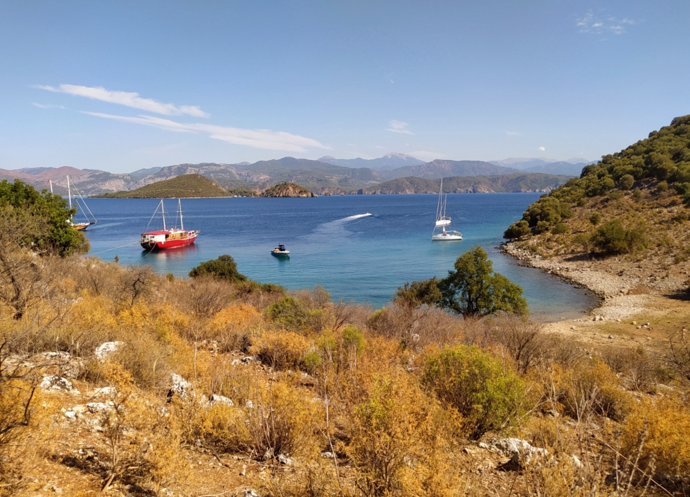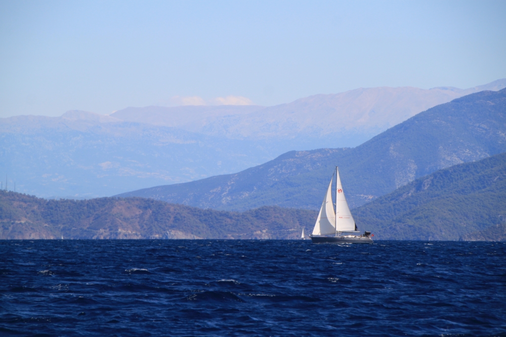 Из-за того, что накануне мы прошли мимо Скопеа Лимани, наш путь 1 октября выглядел довольно странно: выйдя пораньше из Фетхие, мы сперва завернули на запад в Скопеа Лимани, а после обеда отправились обратно на восток через залив Фетхие к острову Гемилер.