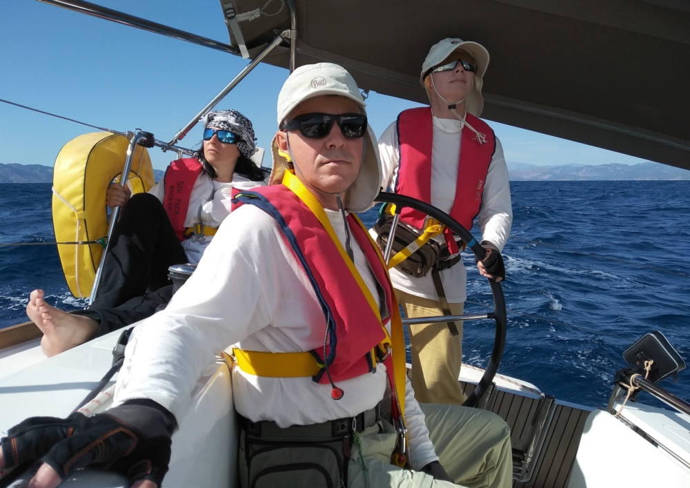 Ветер был попутный, довольно сильный. Уже в проливе зарифили паруса, одели жилетки и пристегнулись.