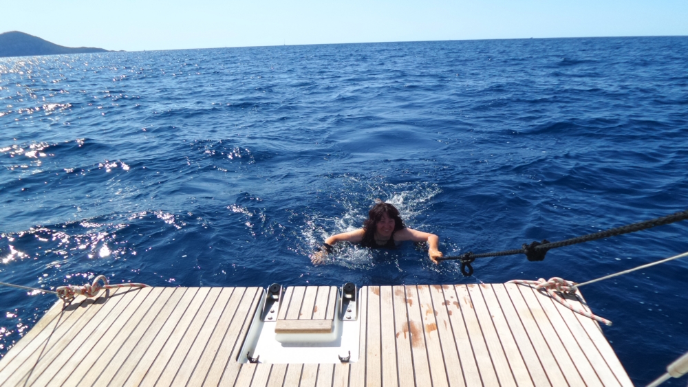 Потом пришлось завести мотор, но при этом все, кроме меня, пожелали купаться на конце. В марине ведь уже не искупаешься.