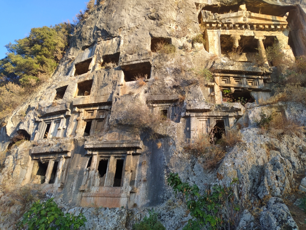 Я тогда еще не знала, что в некоторых переулках в центре города ликийские гробы стоят в частных дворах, а гробницы выбиты в скале у соседа напротив. Но до них доходят только очень неправильные туристы вроде нас с Раном, которые решили срезать подъем на соседнюю улицу.