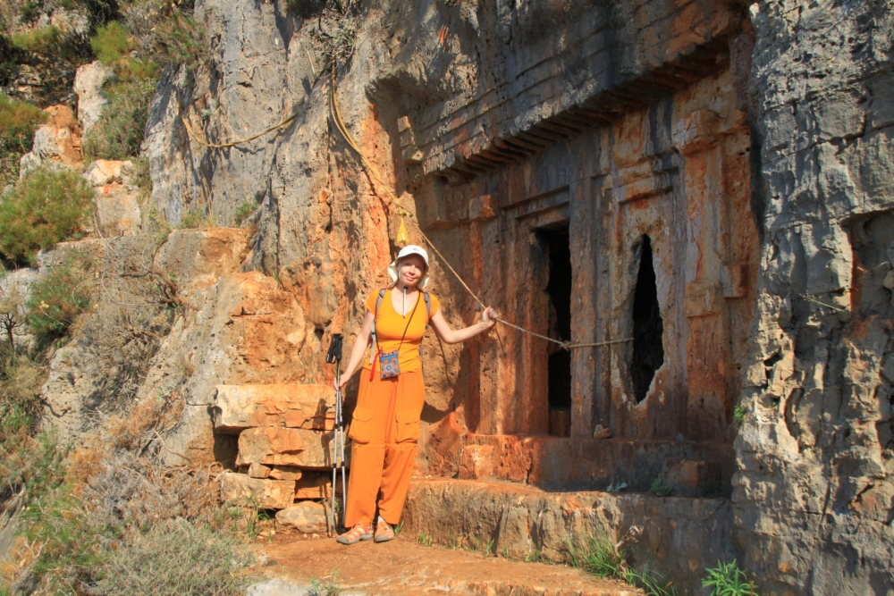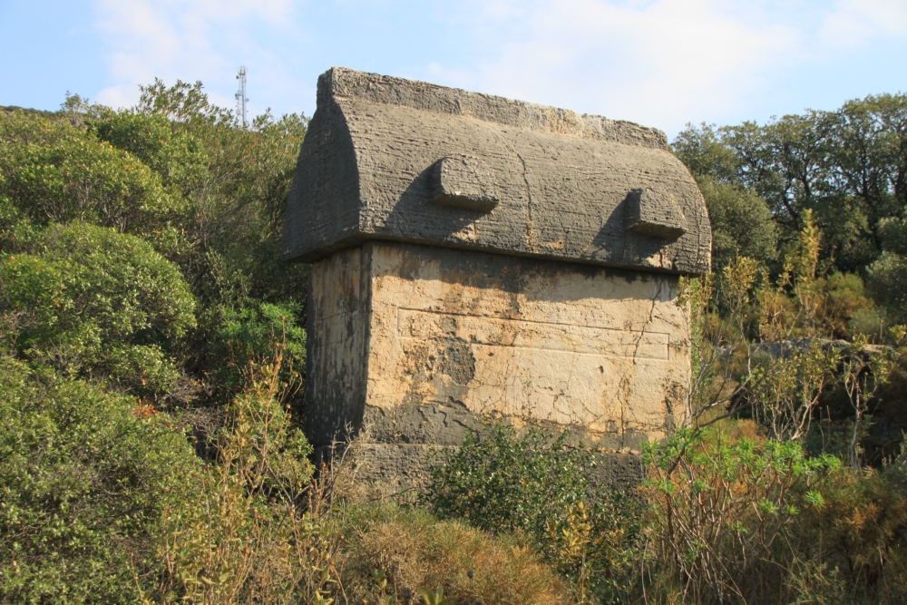 А вот и ликийское наследие. Как я уже рассказывала, это гробы и гробницы особой формы.