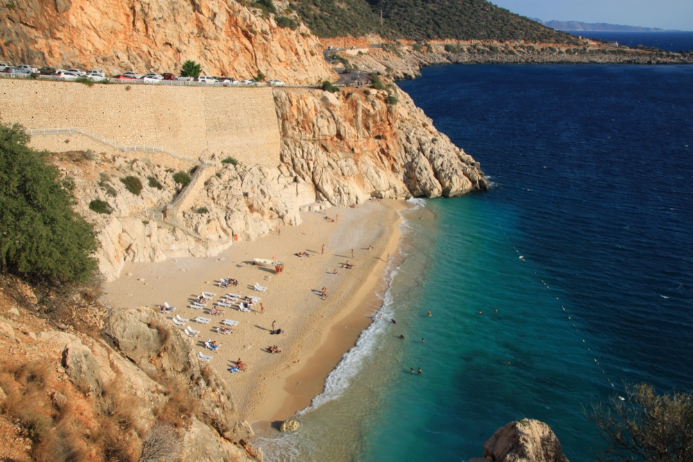 Купив в Каше местной свежей хурмы, мы двинулись в обратный путь. Но по дороге остановились искупаться на пляже Капуташ.