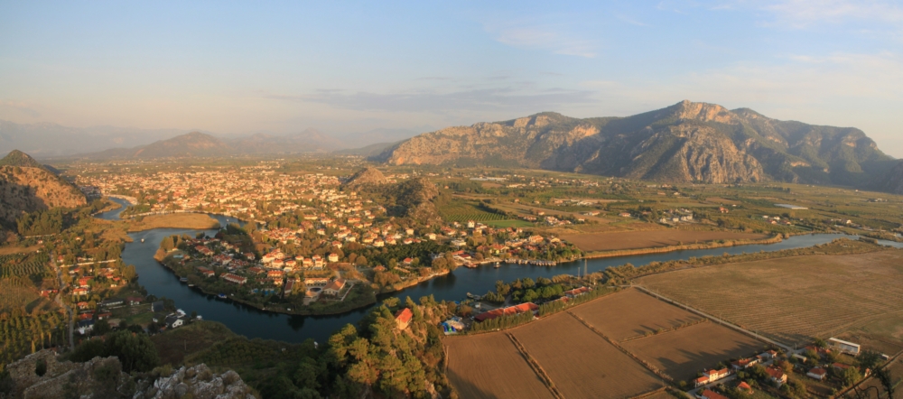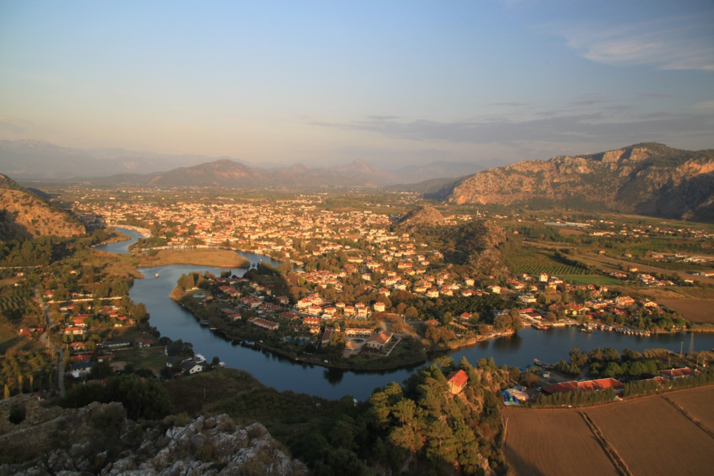 Каунос расположен на границе Ликийского и Карийского царства, она как раз проходила по реке. Вид на реку с высоты: