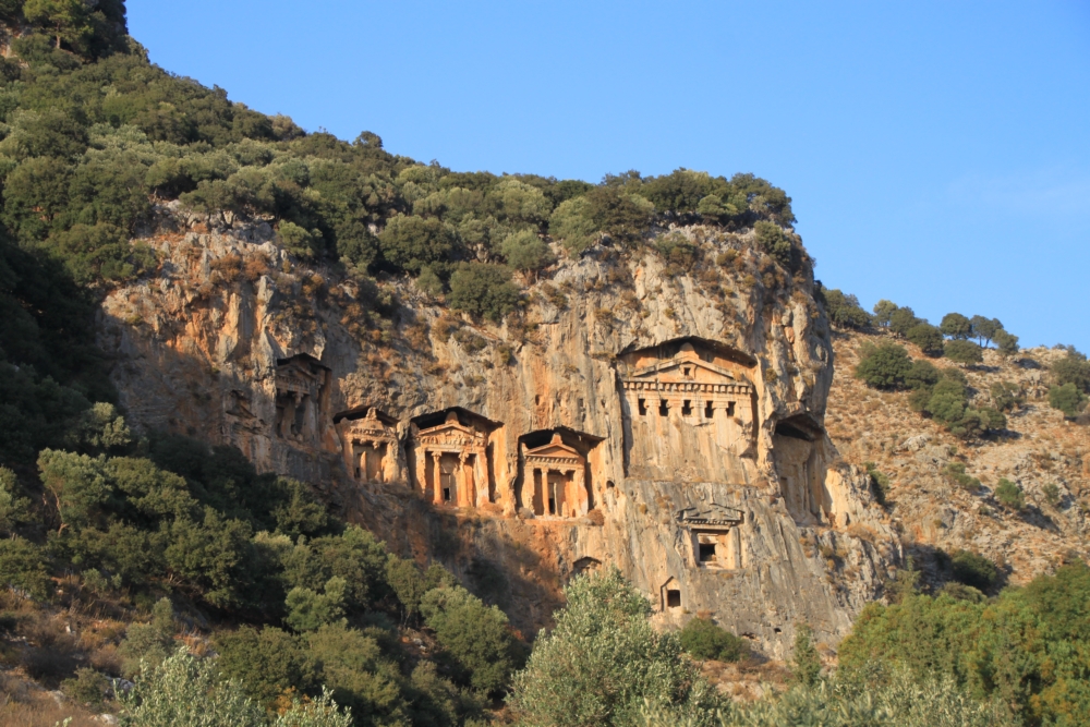 Город Каунос (Кавн) был основан в 10 в. до н.э., захвачен персами в 6 в. до н.э. Сперва он был портом, пока река Калбис (совр. Дальян) не заилилась. Теперь Каунос стоит в нескольких километрах от берега моря!