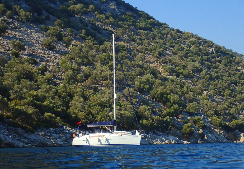 Встали на обед, потом шли до бухты Бозбурун, всего получилось 20 миль. На нашей улице снова был бакштаг, ура! Ну и вообще мы стали через неделю работать гораздо слаженнее — быстро поднимаем грот, якорь уже закидывается с первого раза.