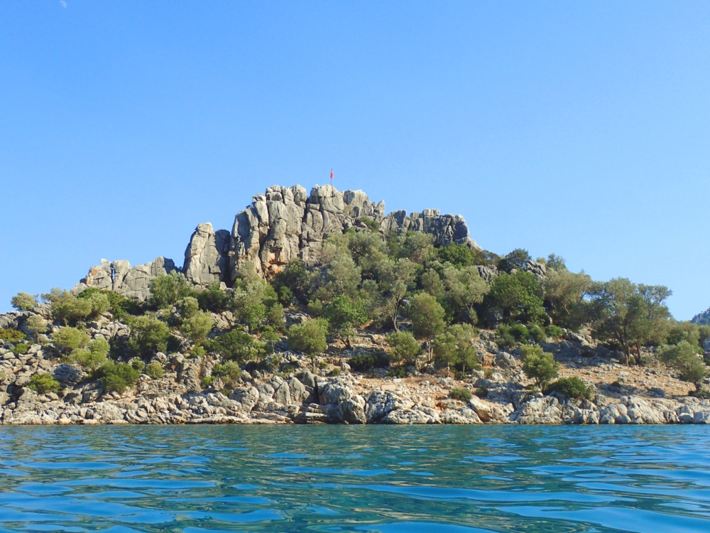 Обратите внимание, что на ней турецкий флаг. Турки в любом интересном месте вешают государственный флаг, прямо комплекс какой-то. Наверное, это с прежних времен повелось, когда они у всех соседей вокруг отжимали территорию. Флаг не повесишь, глядь, а там опять греки (в разном смысле этого слова :-)