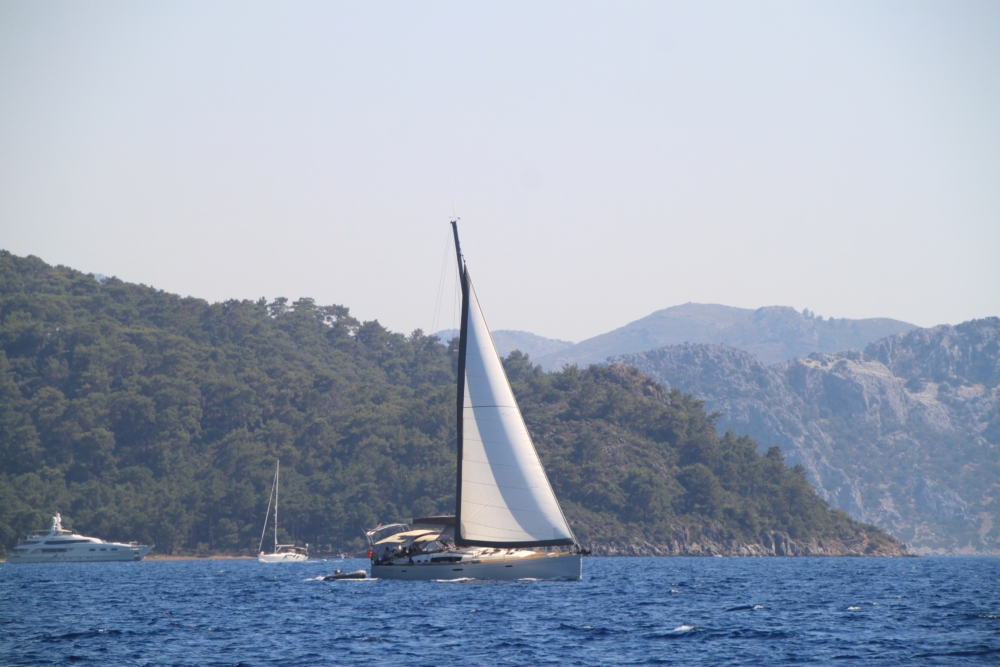 После Мармариса переходы стали более короткие. Мы подстраивались под ветер: в этих краях раздувает днем и под парусом как раз хорошо идти. А утром часто штиль. Но надо прогноз смотреть, ветра в этом районе бывают интересные.