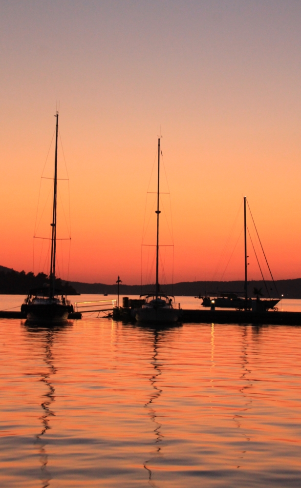 В бухте Серче забрасывали якорь 4 раза, все чего-то было не так. Еще и якорная лебедка раскрутилась и перестала тянуть цепь. Ран ее закрутил и вроде заработала. Оказалось, что не такая уж она медленная и тормозная, как была. После третьего раза вроде встали, но получилось близко от берега. Поужинали, посмотрели друг на друга и забросили якорь в четвертый раз. И не зря: ветер в бухте был, крутил на 180 градусов, даже после заката оставался довольно сильным.