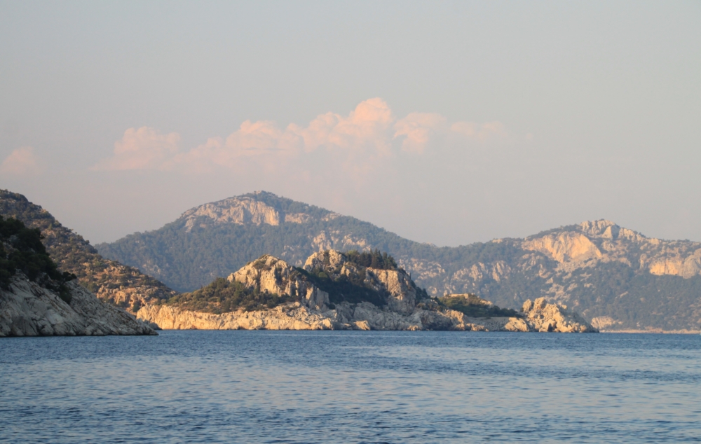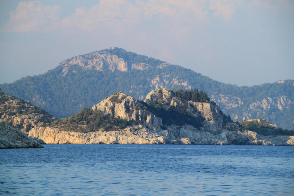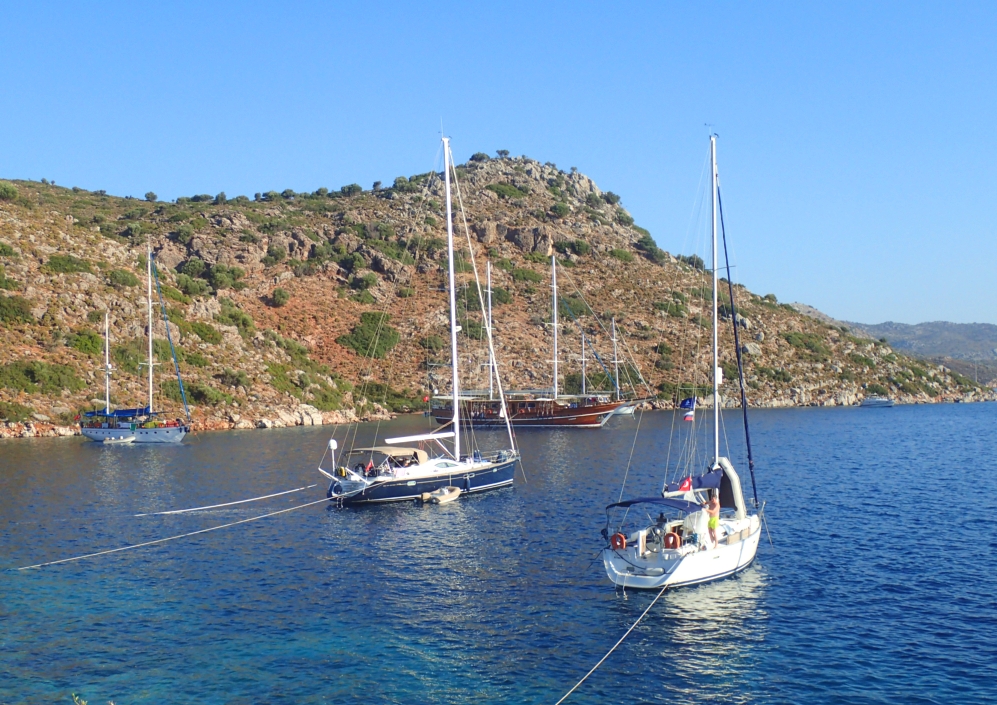 Пять часов шли под парусом бакштагом, потому что фордевинд получался уж очень шатким. Приходилось идти галсами, волны и ветер до 20 узлов, хотя чаще 15–17. За пару часов перед Фетхие ветер немного стих, и я даже обед приготовила. Под конец пошли на моторе, просто устали. А паруса не убирали, получалось быстрее на 0.5–1 узел. В этот день яхта разгонялась до 6.5, максимум — 6.9 узлов. Наверное, 7 узлов — ее конструктивный максимум.