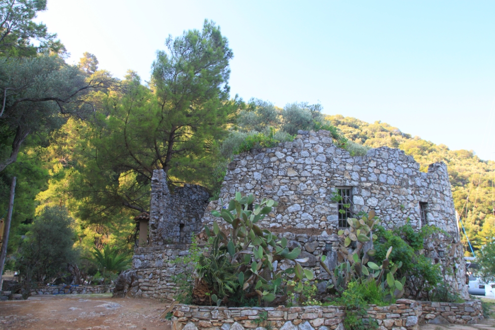 На следующее утро соседняя гора до 9 утра загораживала стоянку от солнца. И было прохладно. В утренней тени мы походили по живописным руинам возле марины.