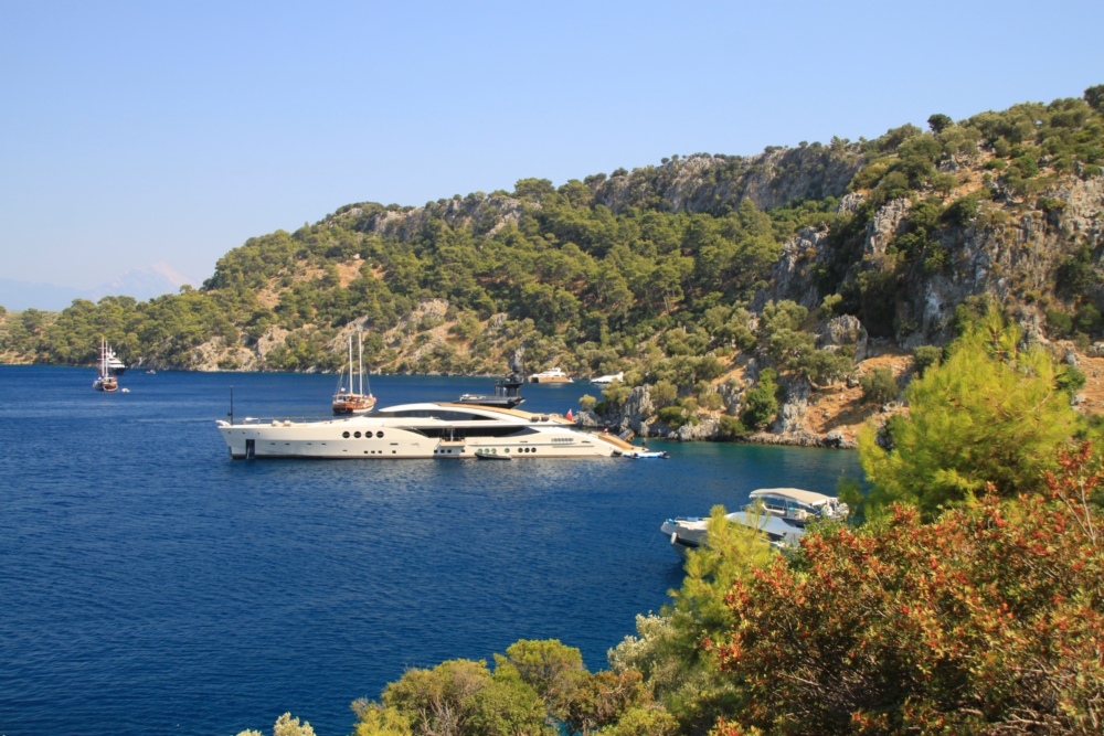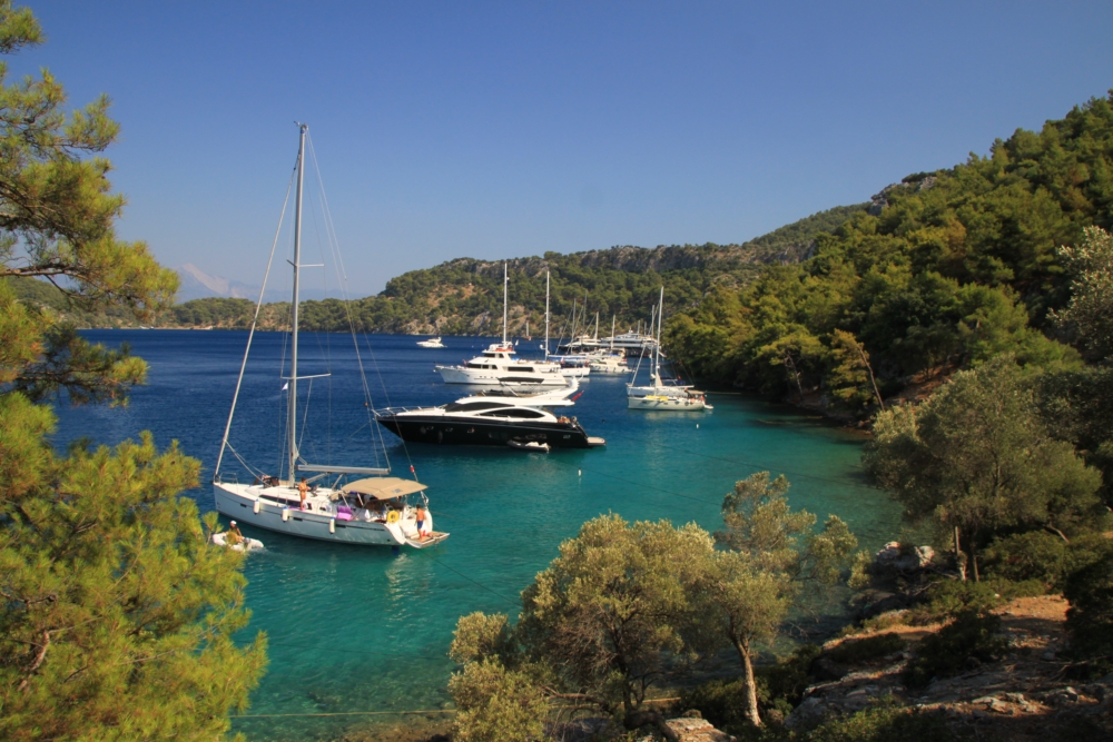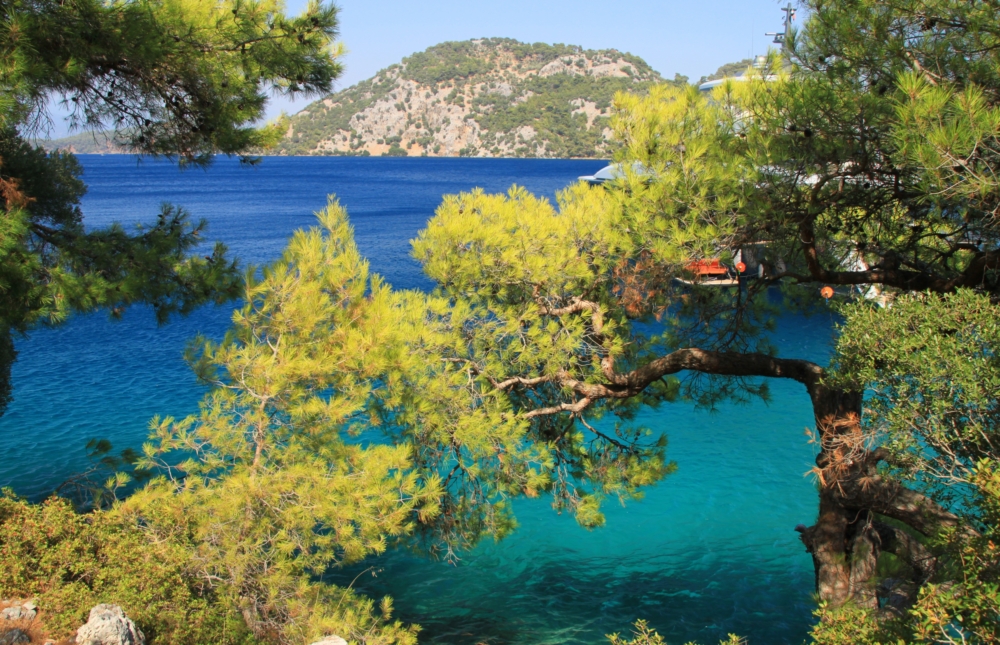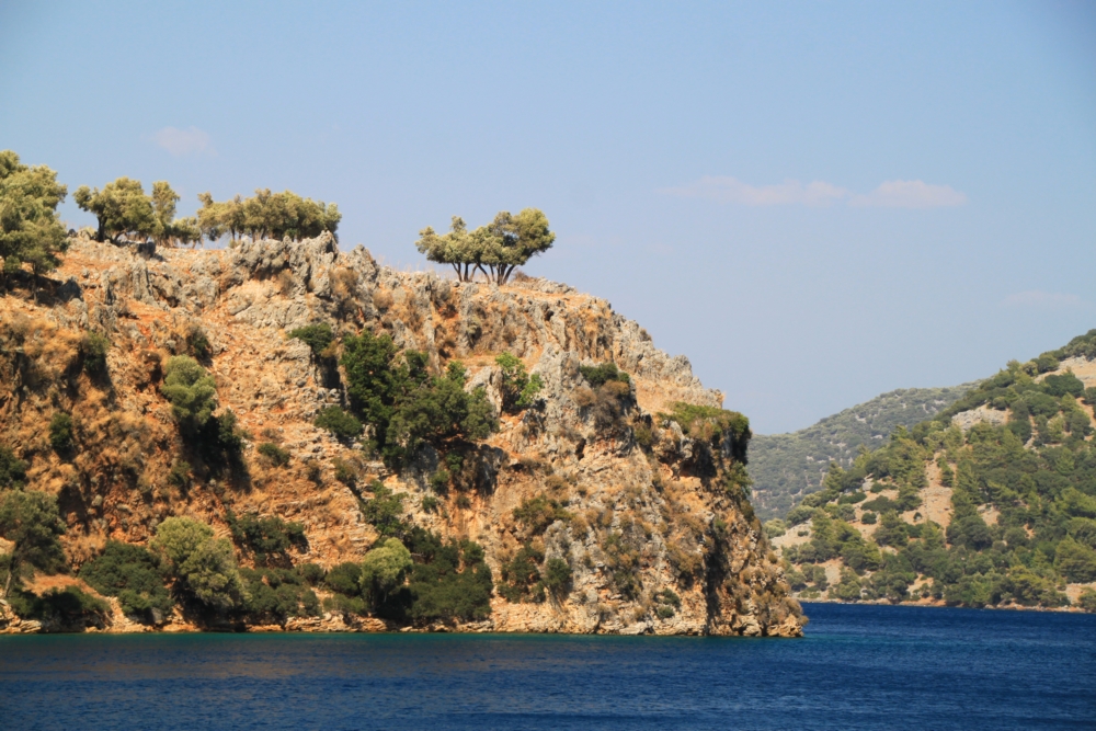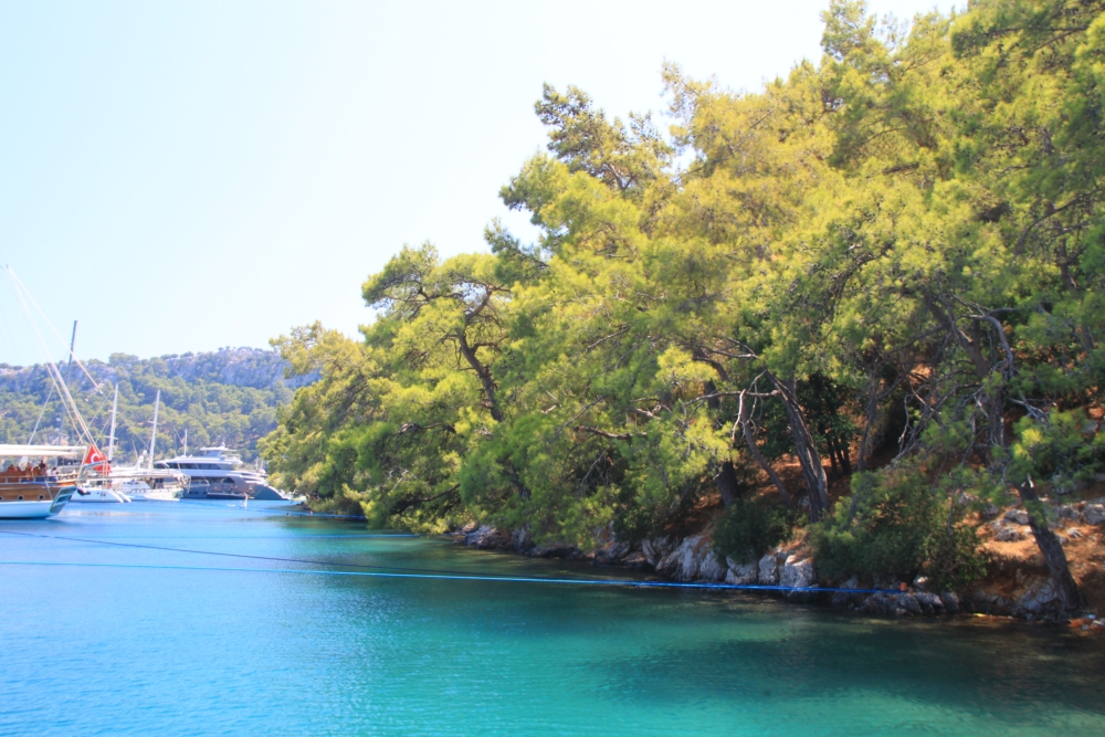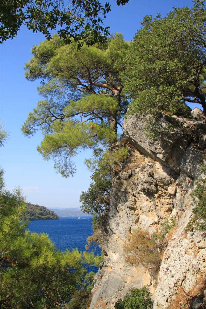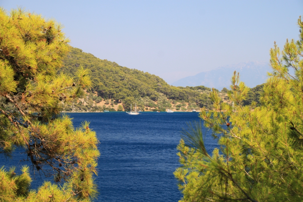 Утром 6 августа мы покинули остров Гемилер и пошли в залив Скопеа Лимани. Это очень живописное место к западу от Фетхие. Мы немного погуляли по его берегам прошлой весной и знали, что там сосновые леса и море яркого и чистого цвета.