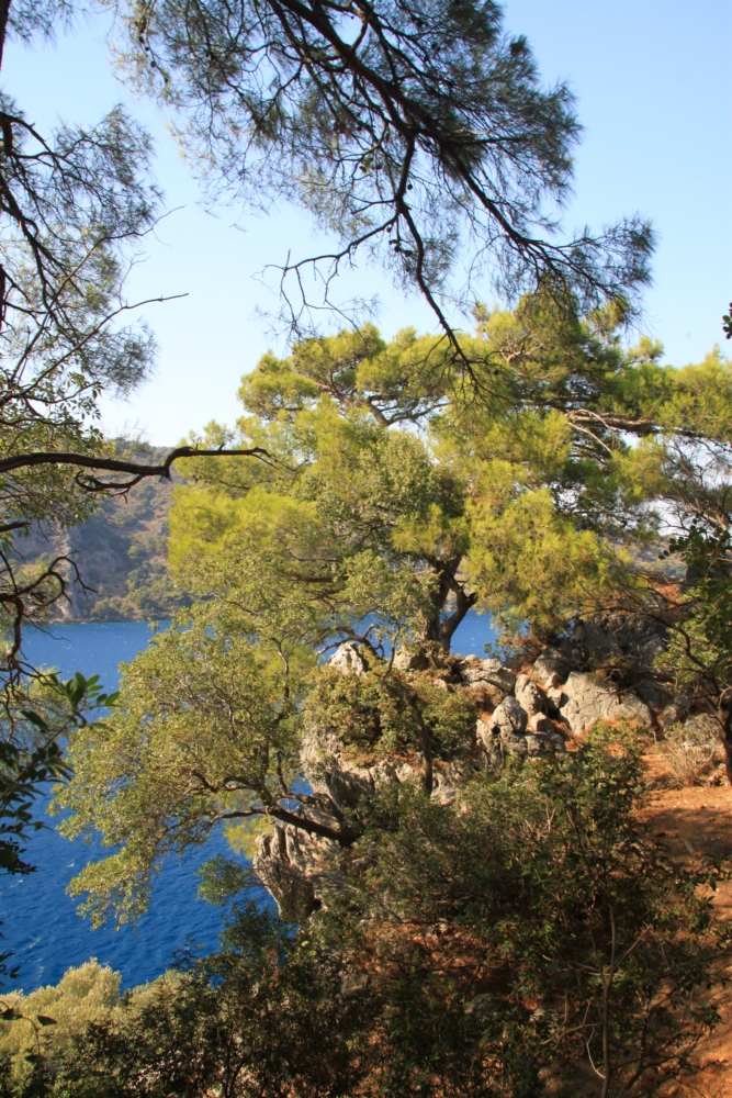 Вдоль берега идет тропа. Где-то даже есть бело-красная разметка, тут пытаются придумать маршрут между Карийской тропой на западе и Ликийской тропой на востоке, но он пока в процессе разработки.