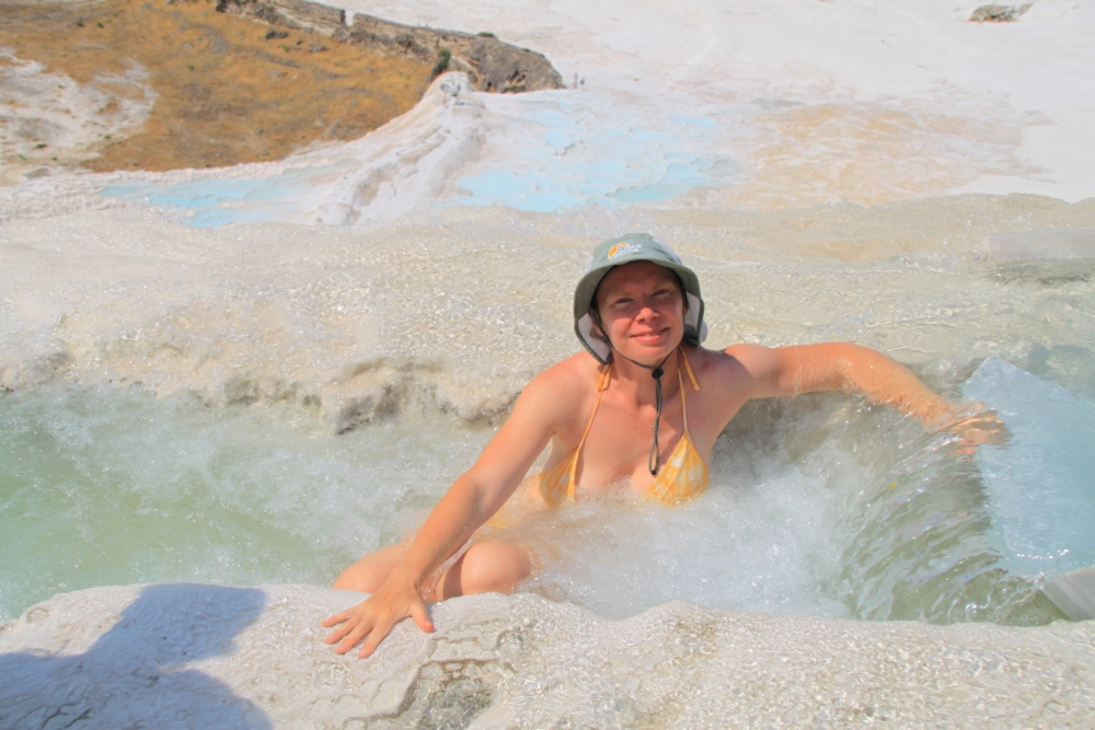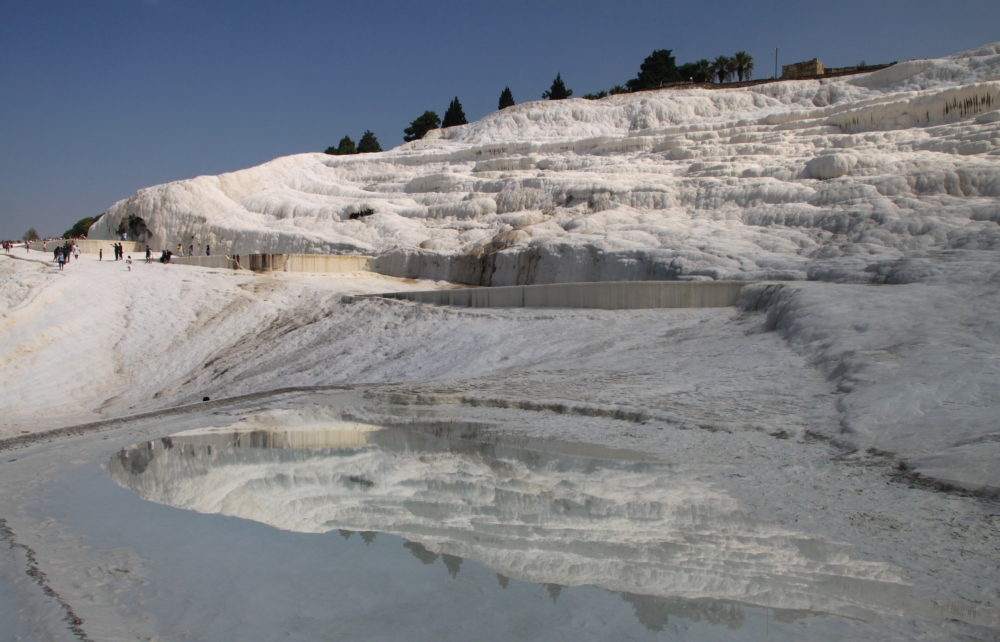Вход на террасы теперь стоит 80 лир (а два года назад 35), а бассейн Клеопатры — 100 лир (а был 50). Зато бассейн внезапно открыт, наврал нам интернет! И народу там почти не было, потому что турков бассейн этот термальный не особо интересует.