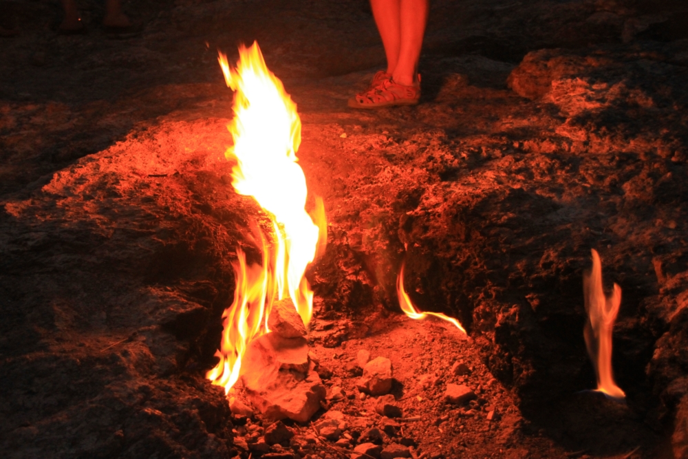 В темноте маленькие факелы природного газа смотрятся уютнее.