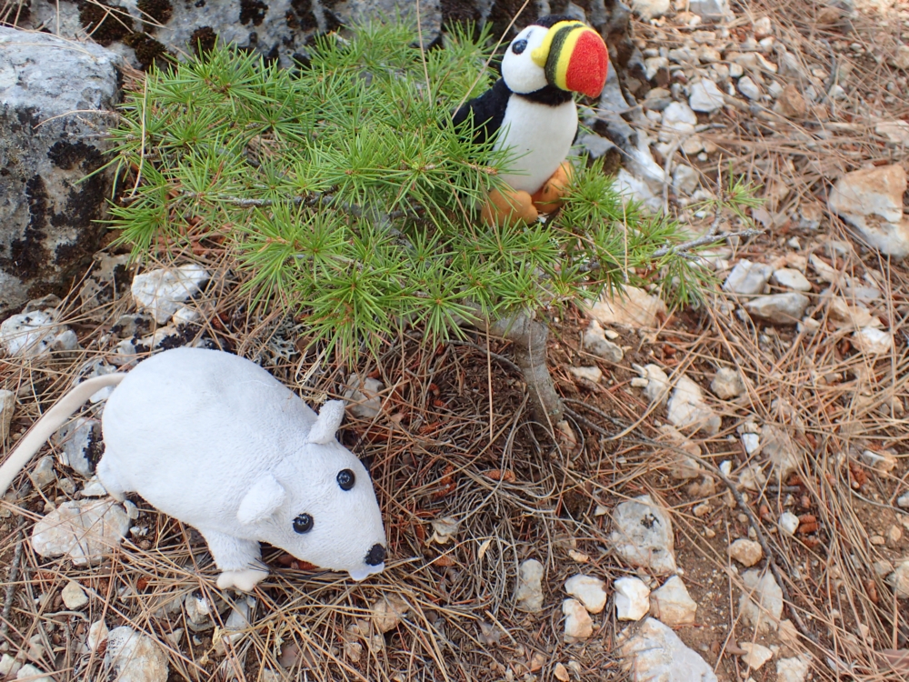 Наши звери возле маленькой сосны.