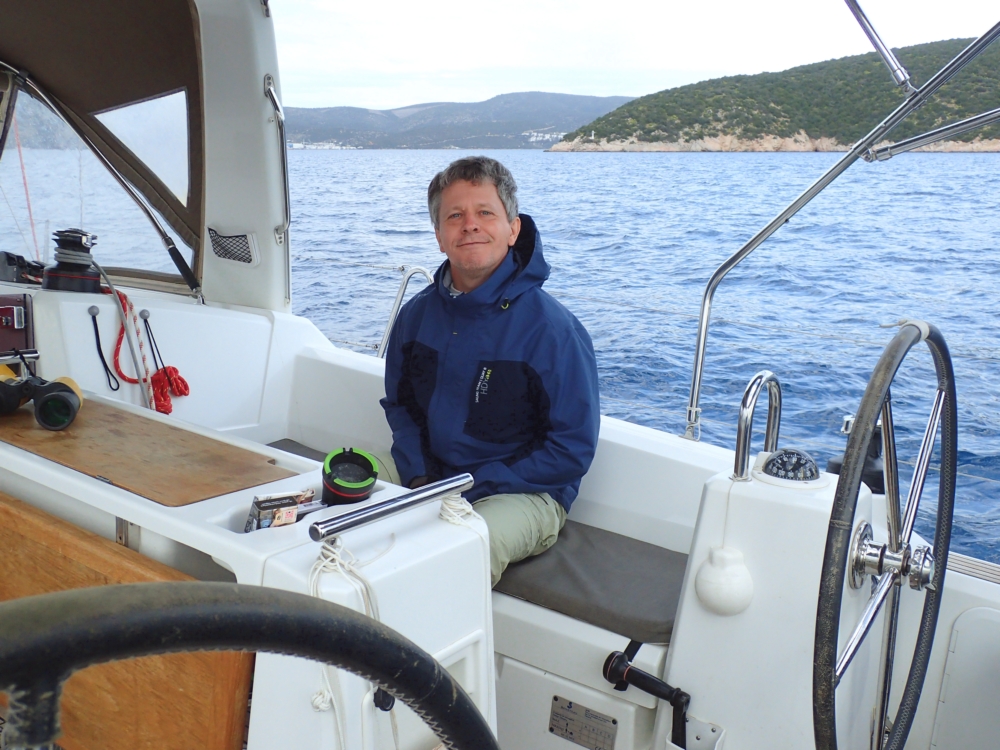 5 узлов скорость относительно земли и 7 узлов ветер. Ну, 7 — это неправда, анемометр врет процентов на 30-40, но даже если ветер 10 узлов, то для круизной яхты так не бывает. Потому что обычно на бейдевинде скорость яхты составляет треть от скорости ветра, на галфвинде — половину.