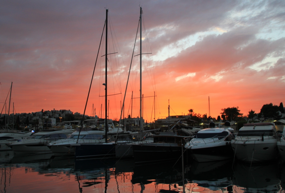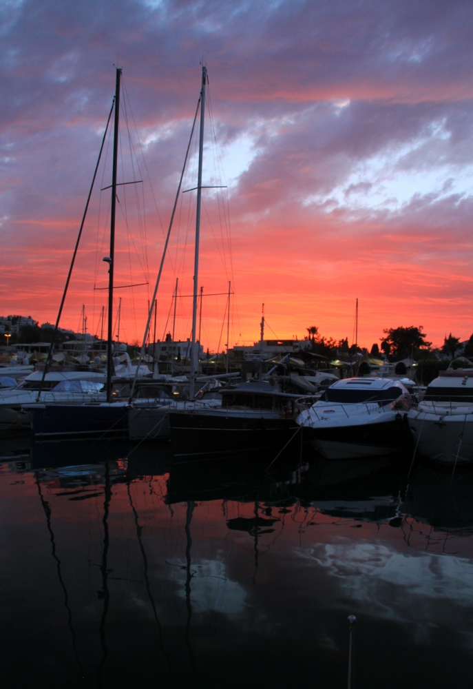 В марине показывали замечательный закат.