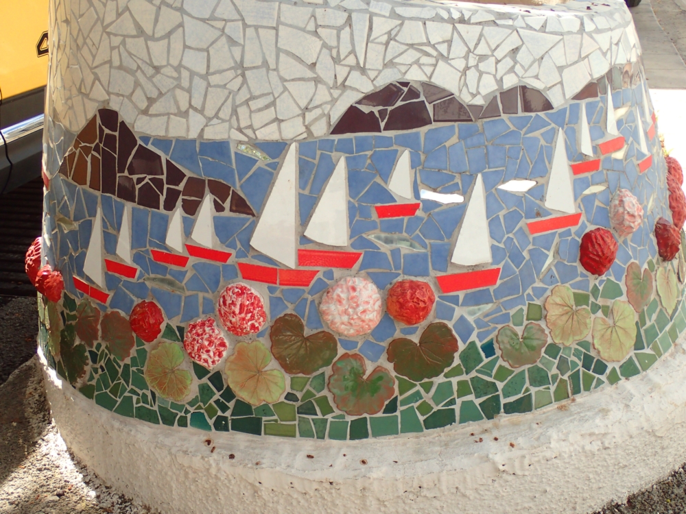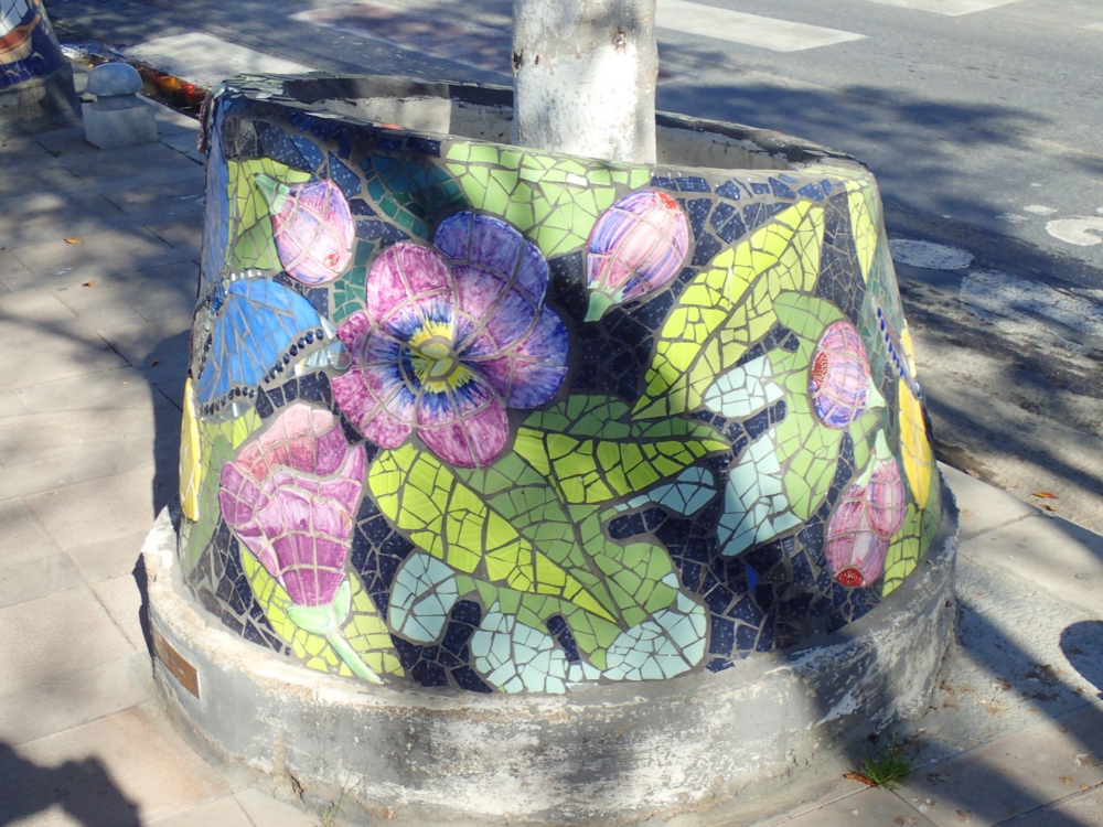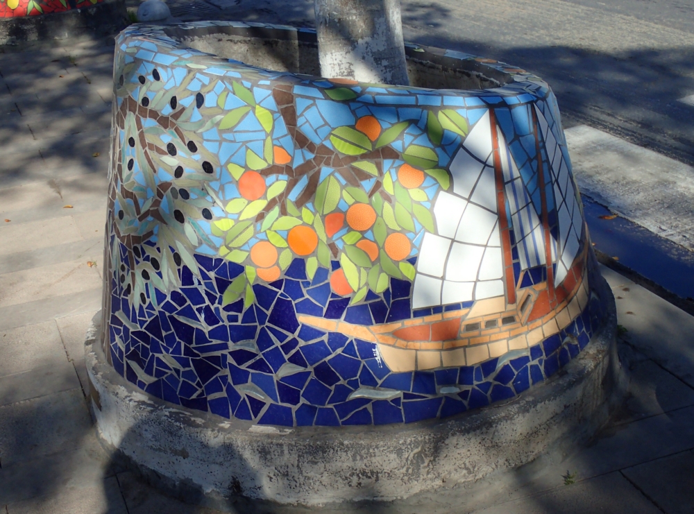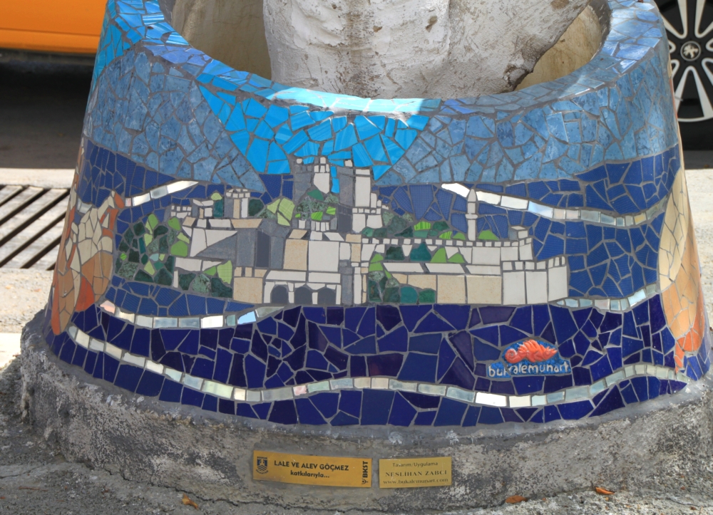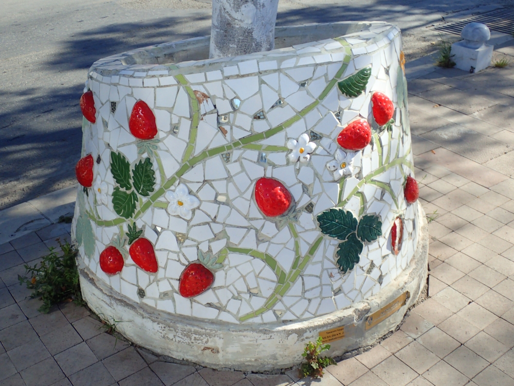 Если спросить, что мне больше всего запомнилось в Бодруме, то я отвечу: тумбы! На центральной аллее деревья окружены мозаичными тумбами, и я просто не могла от них оторваться. Так что сейчас будет много тумб дивной красоты: